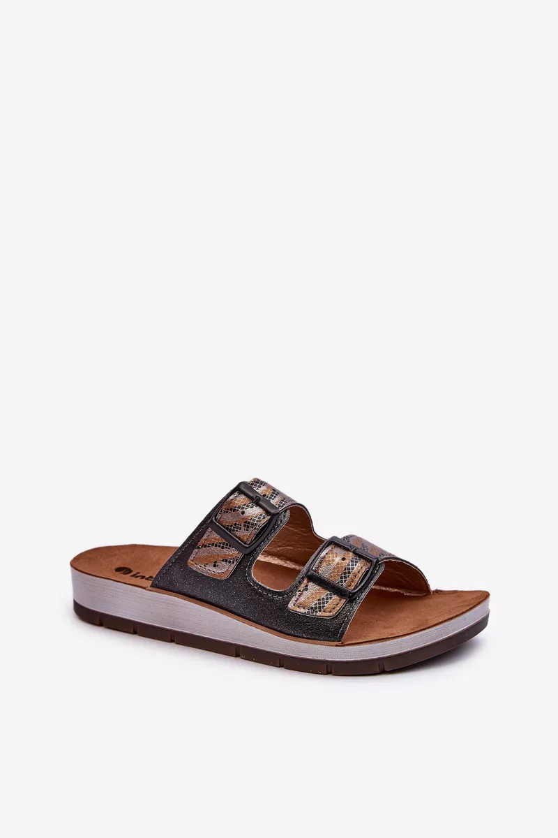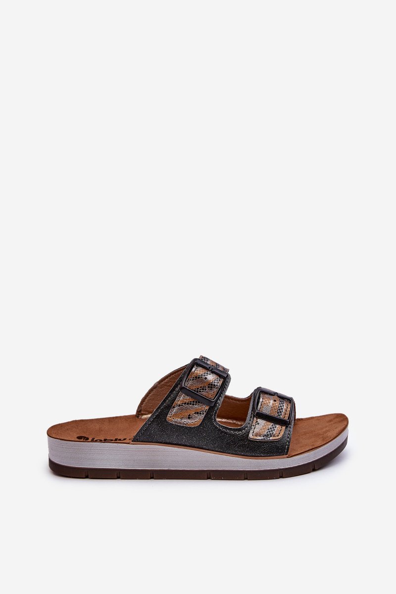 Stilīgi INBLU sandales. Izgatavotas no augstas kvalitātes ekoloģiskās ādas un sintētiska materiāla kombinācijas augšējā daļā. Slip-on stils. Iekšzole ir konturēta, pielāgota pēdas anatomiskajai formai, un arī izgatavota no dabiskas zamšādas. Zole un platforma ir izgatavotas no putu un sintētiska materiāla kombinācijas. Pateicoties pareizajai tehnoloģijai un materiāliem, šie sandales ir ārkārtīgi ērti un praktiski. Izvēloties savu izmēru, lūdzu, izmantojiet izmēru tabulu.