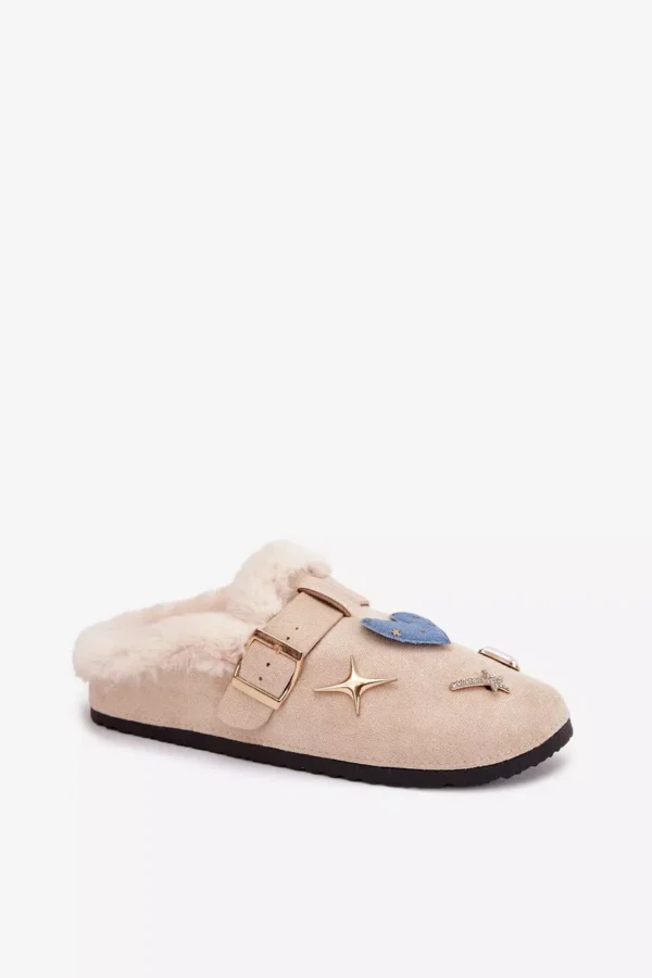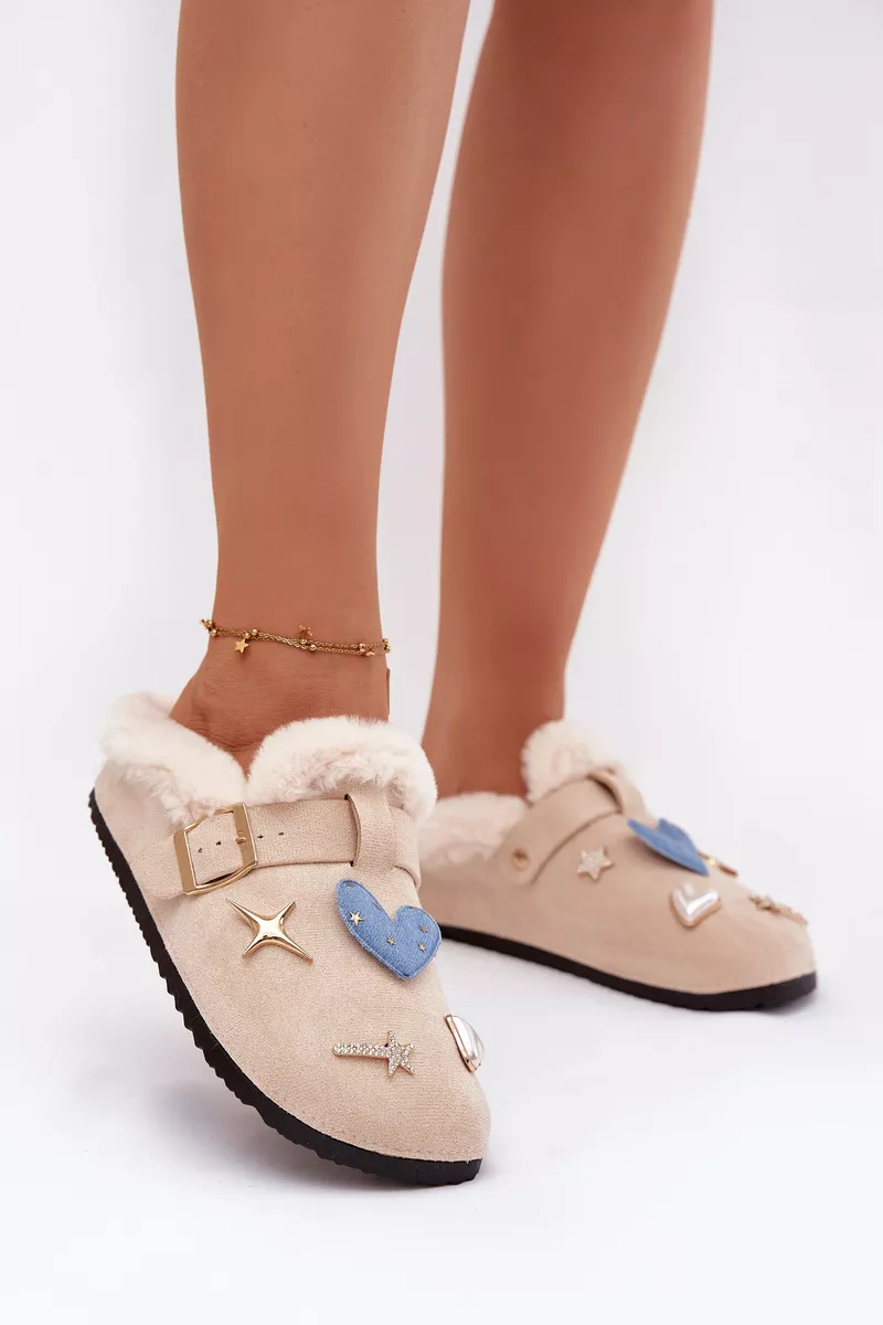 Sieviešu čības, kas izgatavotas no ekoloģiska zamšādas, ir mājīgs un stilīgs modelis, ideāli piemērots vēsākiem dienām. iekšpusē esošā mīkstā kažokādas apdare nodrošina siltumu un komfortu. Cēlās pogas piešķir tām īpašu raksturu, bet sprādzes josta kalpo gan kā dekoratīvs elements, gan kā daļa, kas uzlabo piemērotību. Tie ir lieliski mājas čības — siltas, ērtas un pilnas šarma. Tie ir arī lieliski kā dāvana. Izvēloties izmēru, lūdzu, sekojiet izmēru tabulai. Izvēloties izmēru, lūdzu, skatiet izmēru tabulu.