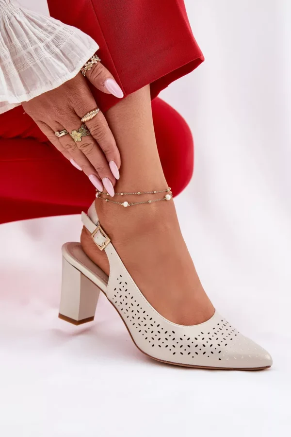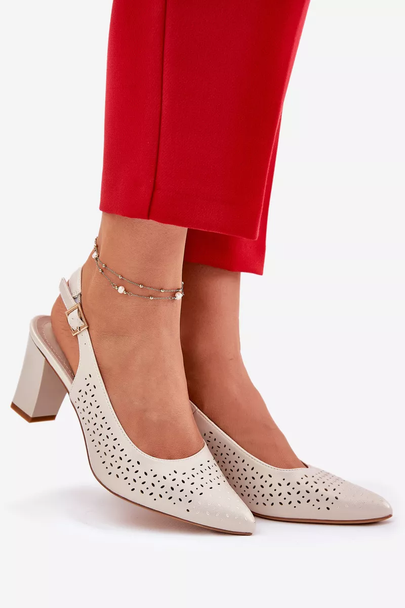 Šie sieviešu sandales, kas izgatavotas no videi draudzīgas ādas un dekorētas ar perforētu rakstu, ir eleganta izvēle siltajām dienām. Smaili purngali subtili pagarina kājas, piešķirot tām slaidu izskatu. Tās tiek aizdarītas ar sprādzi un regulējamu siksnu, kas nodrošina perfektu pielāgošanos kājai. Bloka papēdis nodrošina stabilitāti, un viss dizains apvieno stilu un komfortu, perfekti saderot ar vasaras kleitām, svārkiem vai elegantiem bikšiem. Izvēloties izmēru, skatieties izmēru tabulu.