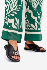 Plakanas elegantas sandales ar rotājumiem, melnas Iseliria