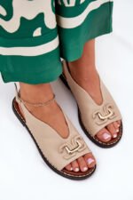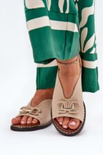 Šie eleganti, videi draudzīgi ādas čības ir ideāla izvēle vasaras dienām, apvienojot stilu un komfortu. Čību priekšpusē ir dekoratīvs elements, kas piešķir tām unikālu šarmu. Plakanā papēža dēļ tās nodrošina komfortu visas dienas garumā. Tās tiek aizdarītas ar regulējamu siksnu ar sprādzi, kas ļauj pielāgot tās savai pēdai. Šie čības būs lielisks papildinājums kleitām, svārkiem un auduma biksēm, radot elegantu un modernu izskatu. Izvēloties izmēru, lūdzu, skatieties izmēru tabulu.