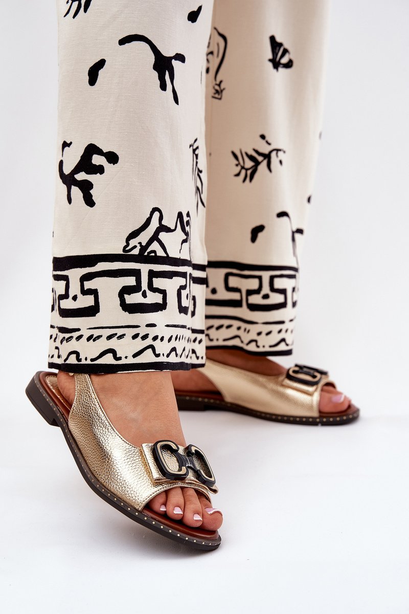 Plakanas sandales ar dekoru no ekoloģiskās ādas, zelta krāsā Lilria