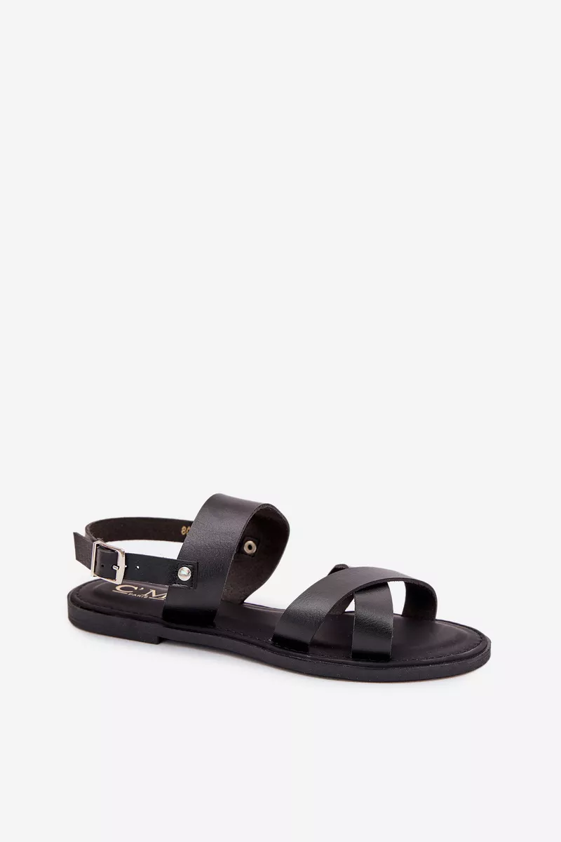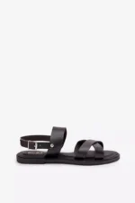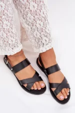 Plakanas sieviešu sandales no ekoloģiskās ādas, melnas Kalira