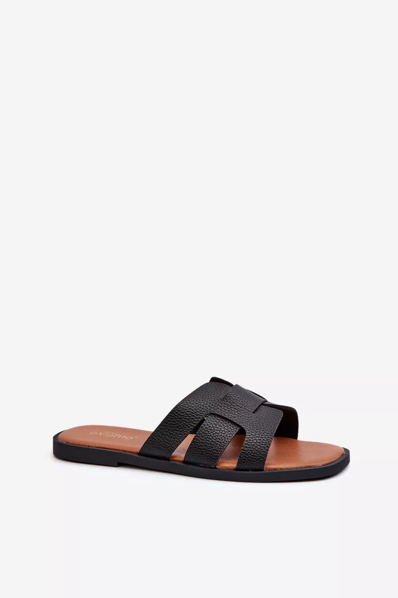 Plakanas sieviešu šļūtenes no mākslīgās ādas, melnas Risamay