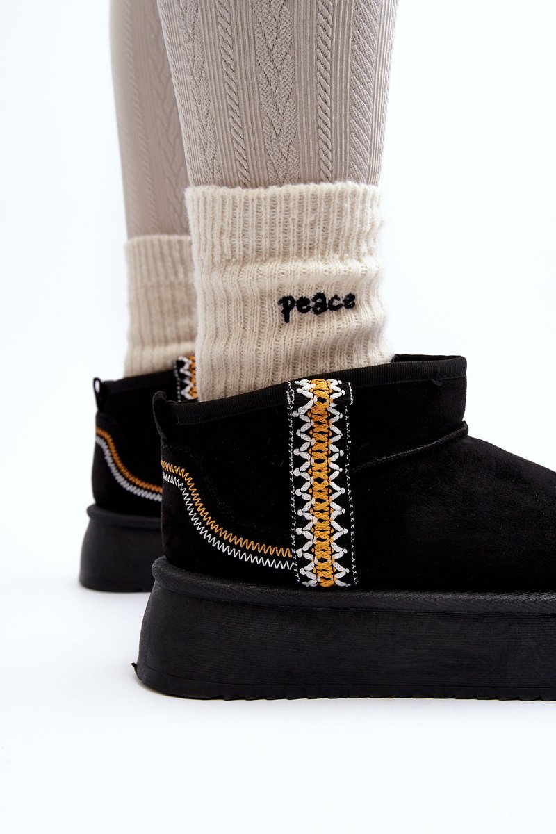 Platformas sniega zābaki ir šīs sezonas karstākais stils! Šis modelis ir izgatavots no videi draudzīga zamšāda. Bieza gumijas zole nodrošina lielisku izolāciju no aukstā zemes. Potīte ir dekorēta ar azteku rakstu. Iekšpuse ir odere. Tie noteikti ir jāiegādājas! Izvēloties izmēru, skatieties izmēru tabulu.