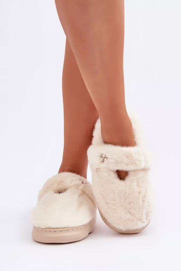 Stilīgas sieviešu čības ar pūkainu, biezu kažokādu, kas apņem jūsu kājas ar siltumu un komfortu. Slēgtais purngals nodrošina papildu aizsardzību pret aukstumu. Ideāli piemērotas ziemas vakariem! Izvēloties izmēru, lūdzu, izmantojiet izmēru tabulu.