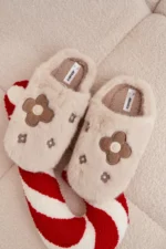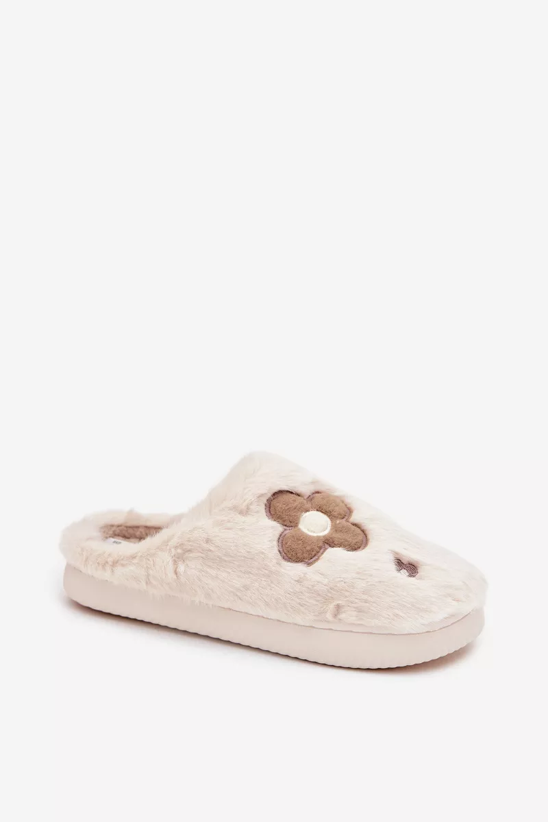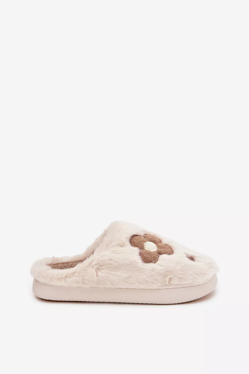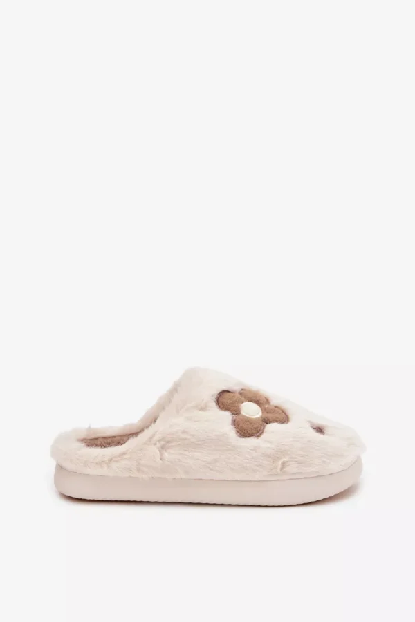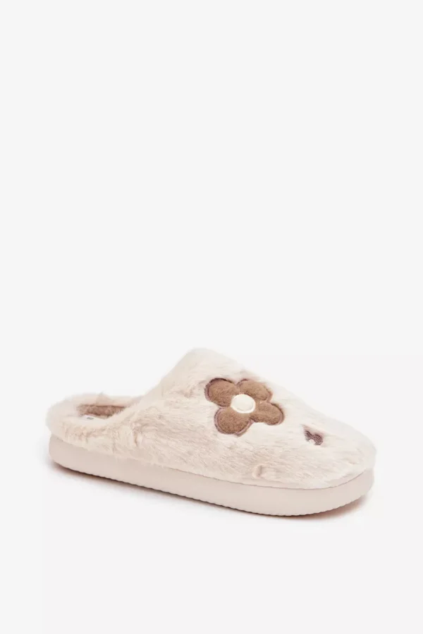 Pūkainas čības ar ziediem, smilškrāsas Selinne
