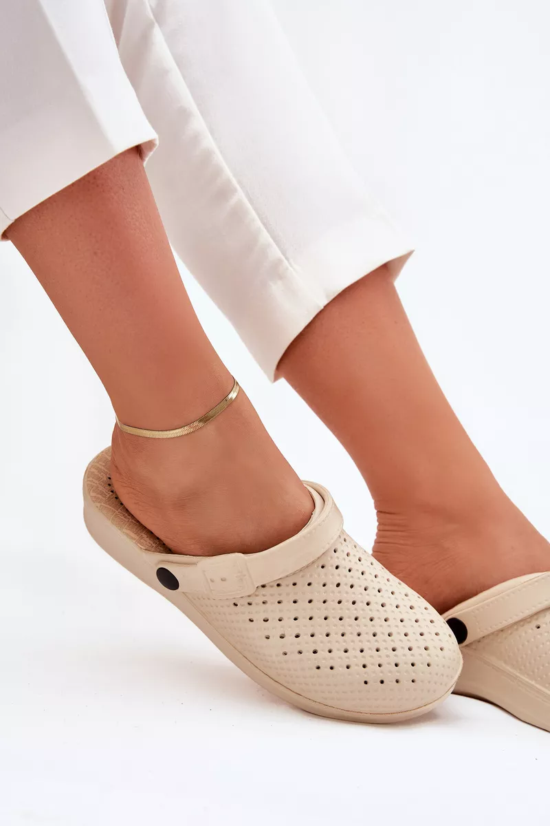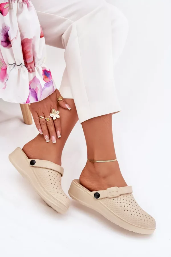 Sieviešu putu čības ar mīkstu platformu. Šim modelim ir noņemama siksna, ko var valkāt uz papēža vai priekšā, ļaujot pielāgot apavus pēc savas gaumes. Slēgti pirksti. Vieglas un ērtas, ideāli piemērotas baseinam, vasaras ceļojumiem vai dienām, kas pavadītas dārzā. Izvēloties izmēru, skatieties izmēru tabulu.