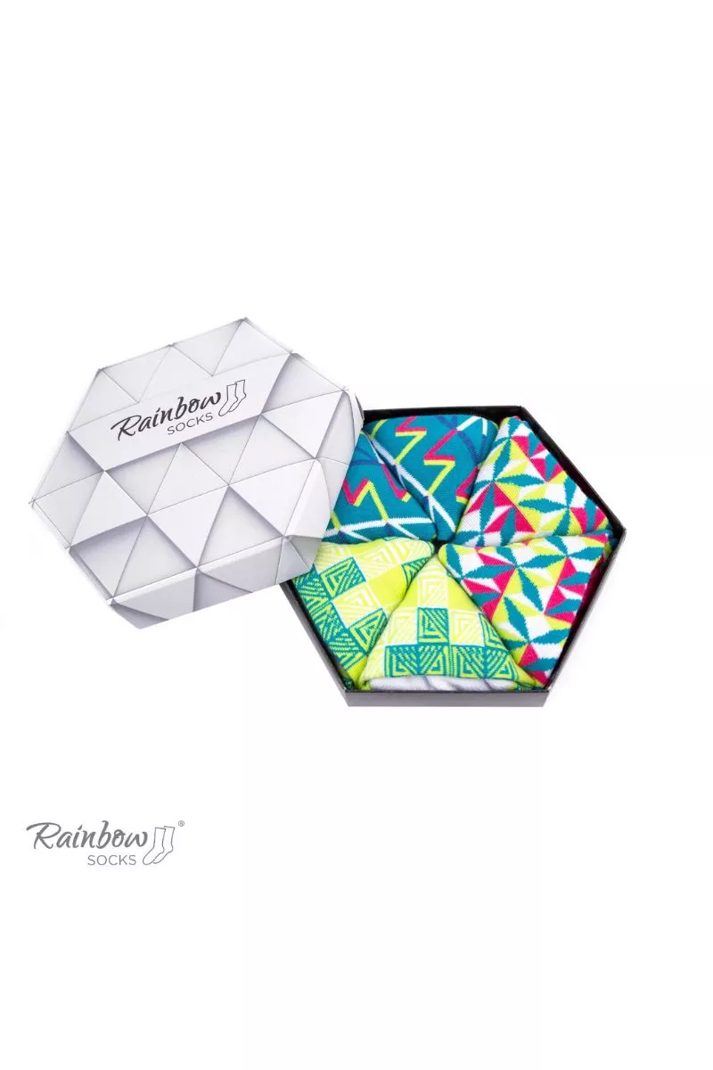Svītraini zeķi un ģeometriski raksti. Vai tas nešķiet kā ideāls krāsains papildinājums jūsu biznesa tērpam? Varbūt jūs pazīstat matemātiķi, kurš ir traks pēc ģeometrijas. Vai arhitektu, kurš mīl proporcijas? Viņiem visiem patiks šie ģeometriski rakstīti zeķi!
