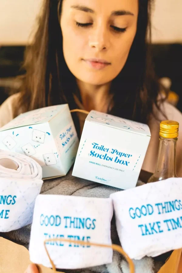 Mīksts, balts, gluds, izturīgs… Kāds ir jūsu mīļākais tualetes papīrs? Esat gatavi jaunai versijai?! Orijinālajā kastē atradīsiet zeķes, kas imitē tualetes papīra rulli. Atcerieties! Karalis paliks karalis neatkarīgi no troņa! Šīs zeķes ir lieliska dāvana jūsu mīļotajam cilvēkam!