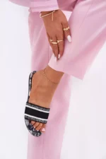 Plakanas sieviešu čības no tekstilmateriāla, kas izceļas ar unikālu rakstu, kas piešķir tām atšķirīgu raksturu. Šie čības ir ideāli piemēroti siltajām dienām un labi saderas ar vasaras kleitām, svārkiem vai šortiem, piešķirot vieglumu, krāsu un modernu akcentu ikdienas stilam. Ideāli piemēroti gan pludmalei, gan pastaigām pa pilsētu. Izvēloties izmēru, lūdzu, izmantojiet izmēru tabulu.