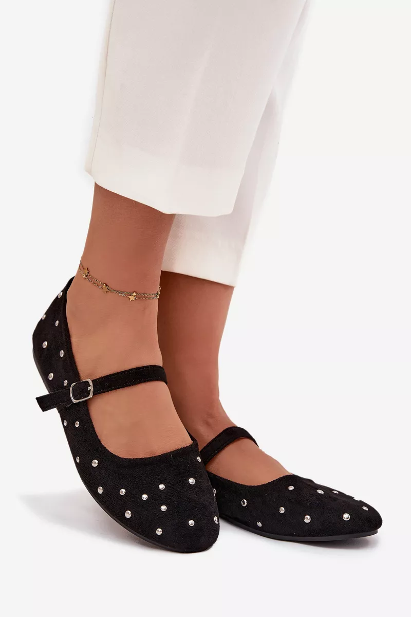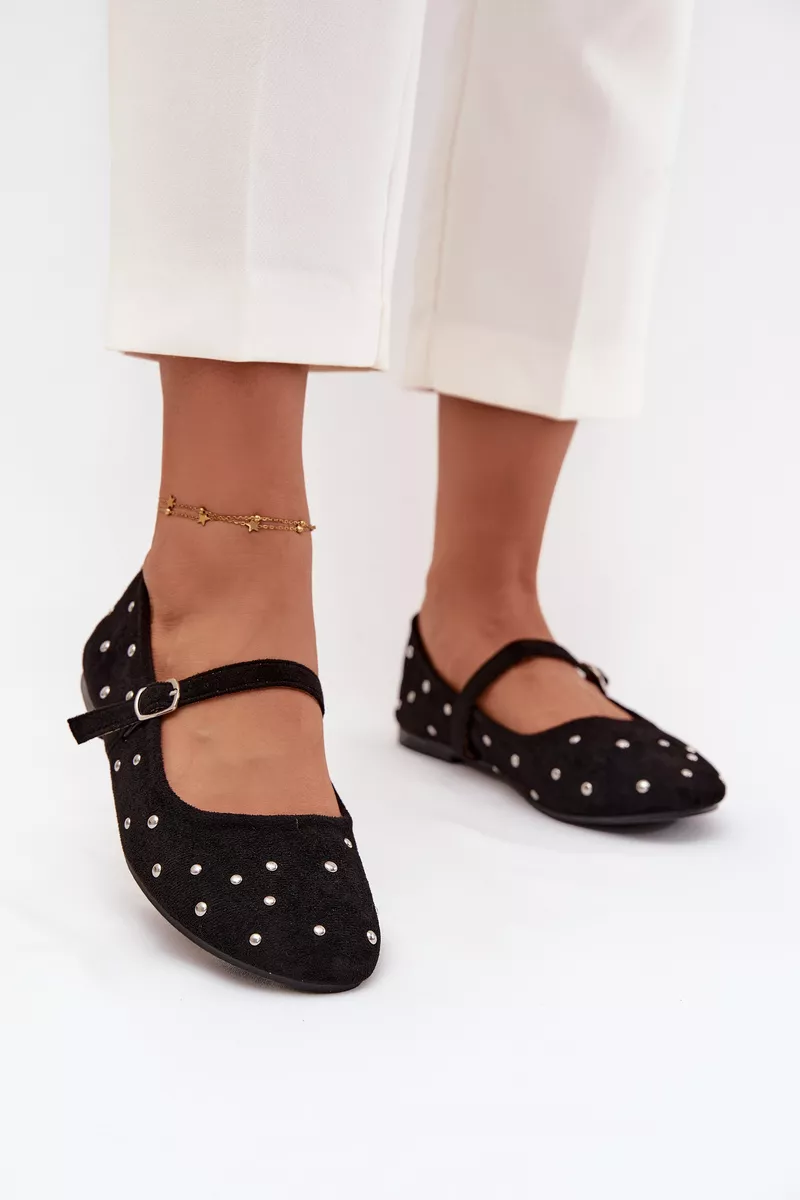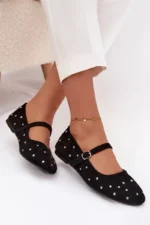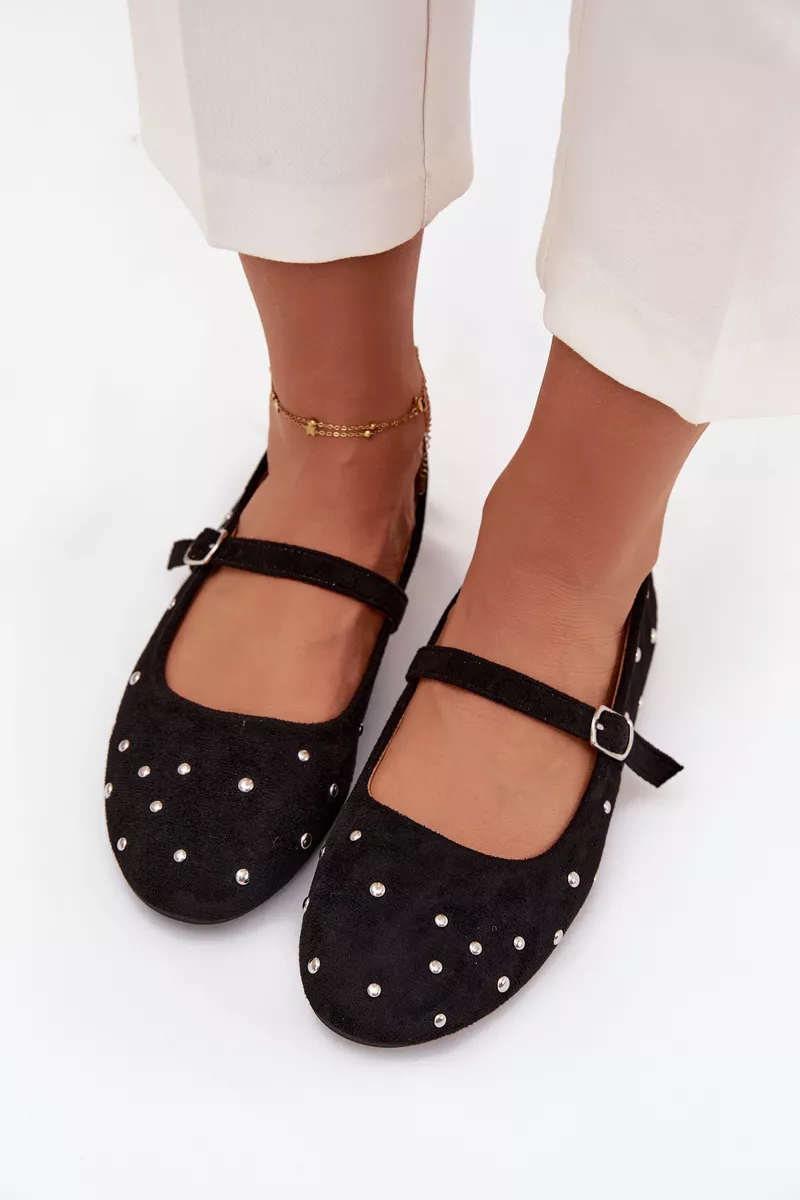 Rotātas sieviešu balerīnas ar siksniņu, melnas Olivisse