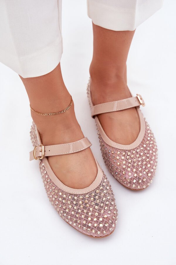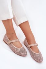 Sieviešu balerīnu kurpes ar rotājumiem, kas apvieno eleganci ar izsmalcinātu stilu. Noapaļotie purngali piešķir tām maigu izskatu, bet siksna ar sprādzi pēdas vidū nodrošina perfektu piegulumu un piešķir papildu dekoratīvu akcentu. Ideāli piemērotas ikdienas stilam, tās labi sader ar kleitām, svārkiem vai biksēm, nodrošinot komfortu un modernu izskatu ikdienā. Izvēloties izmēru, lūdzu, skatieties izmēru tabulu.