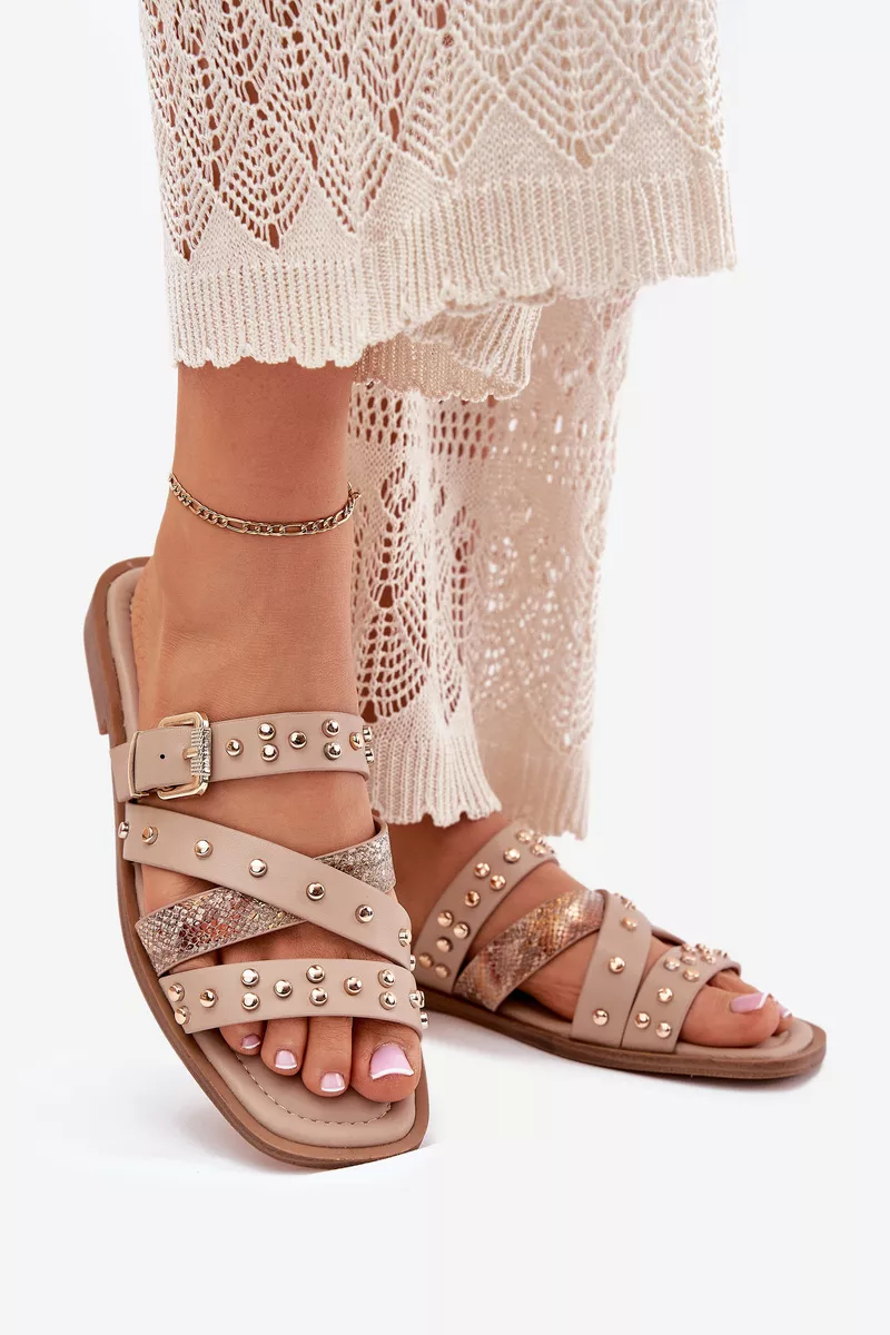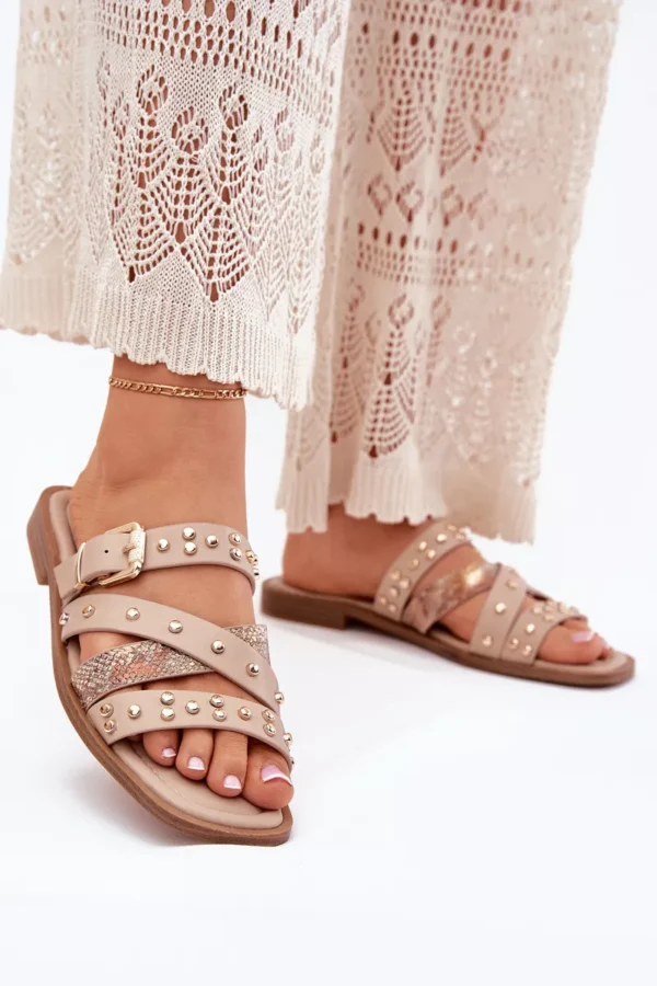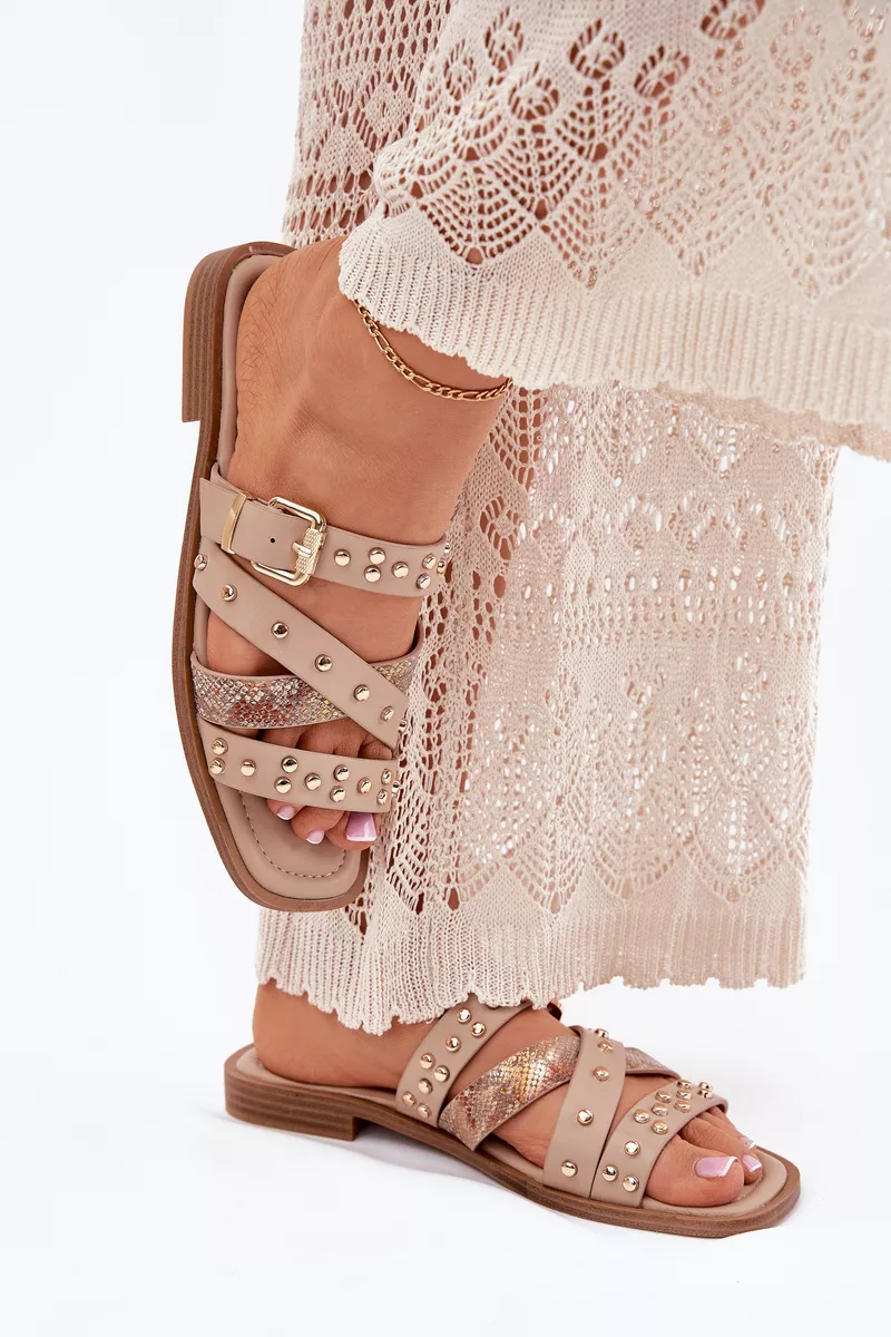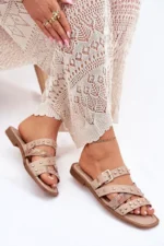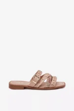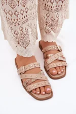 Sieviešu sandales, izgatavotas no videi draudzīgas ādas. Ar plakanu papēdi. Modelis izceļas ar smalkām rotājumiem, sprādzēm un siksnām, kas piešķir tam modernu raksturu. Ideāli piemērots ikdienas stilam, apvienojot komfortu ar modernu izskatu, ideāli piemērots vasaras pastaigām vai neformālām izklaidēm. Izvēloties izmēru, lūdzu, skatieties izmēru tabulu.
