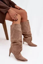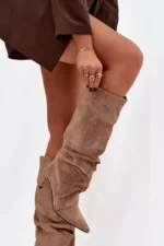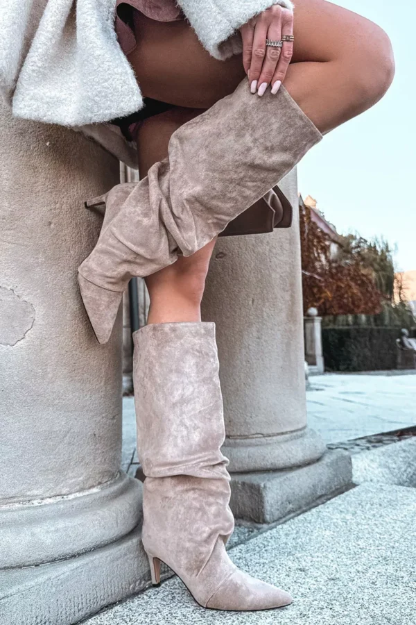 Šie sieviešu potītes zābaki, kas izgatavoti no mīksta mākslīgā nubuka ādas, ir elegants un sievišķīgs risinājums vēsākām dienām. Plānais papēdis perfektu izceļ kājas, bet šaurā purngala piešķir izsmalcinātību un vizuāli padara siluetu slaidāku. Plakana, brīva potītes daļa piešķir visam apavam modernu raksturu. Zābaki tiek aizdarīti ar sprādzi un ir odināti ar siltu segumu, nodrošinot komfortu un siltumu. Šis ir ļoti stilīgs modelis, kas perfekti papildina gan elegantas kleitas, gan ikdienas džinsus, radot modernu un sievišķīgu izskatu. Izvēloties izmēru, lūdzu, izmantojiet izmēru tabulu.