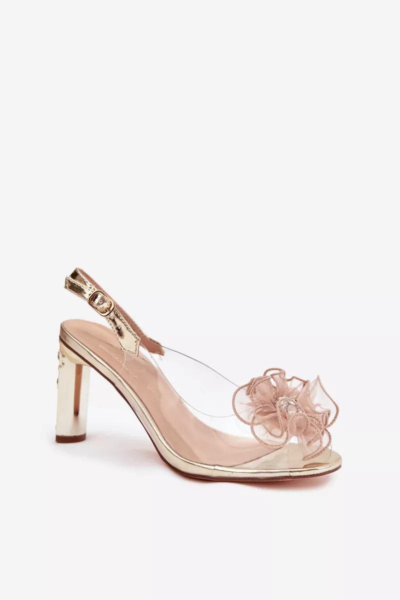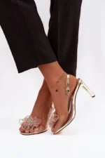 Šie eleganti caurspīdīgi sandales ar stabilu konisko papēdi ir ideāla izvēle īpašiem gadījumiem. Smalks auduma zieds priekšā piešķir sievišķīgu pieskārienu. Kristāliem rotātais papēdis skaisti mirdz, piešķirot dārgakmeņa akcentu. Modelis ar sprādzi un regulējamu siksnu ļauj precīzi pielāgoties kājai, nodrošinot komfortu un pārliecību ar katru soli. Ideāli piemēroti kā papildinājums elegantiem kleitām, vakara tērpiem un svētku izskatiem, kur svarīgs ir stils, detaļas un elegance. Izvēloties izmēru, lūdzu, izmantojiet zemāk esošo izmēru tabulu. Izvēloties izmēru, lūdzu, izmantojiet izmēru tabulu.