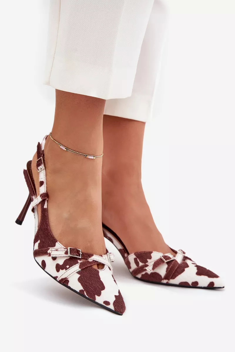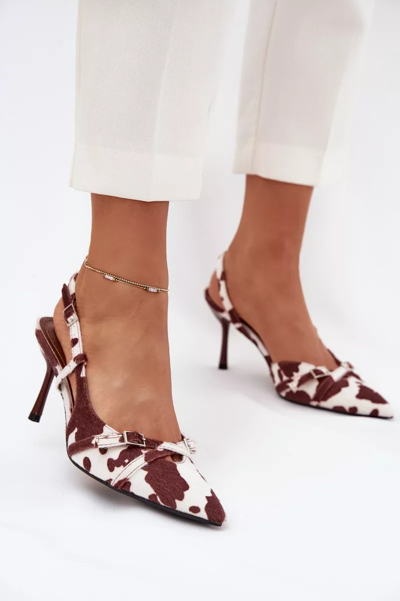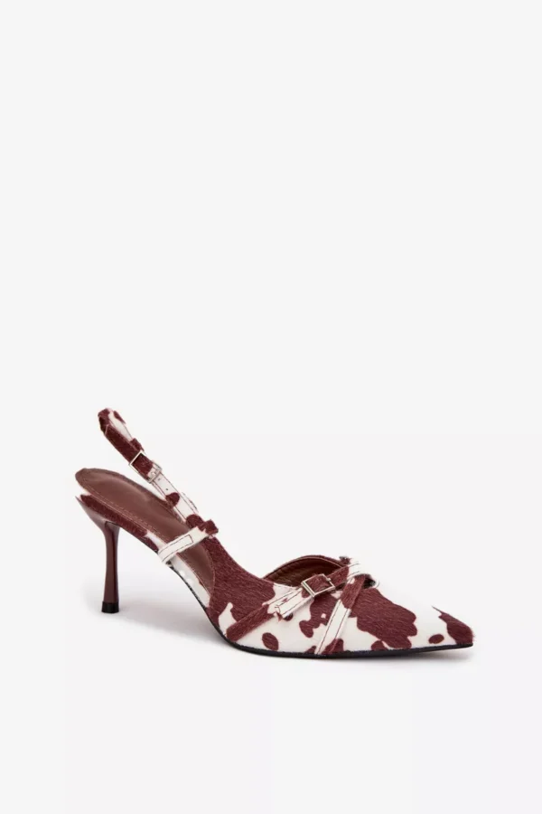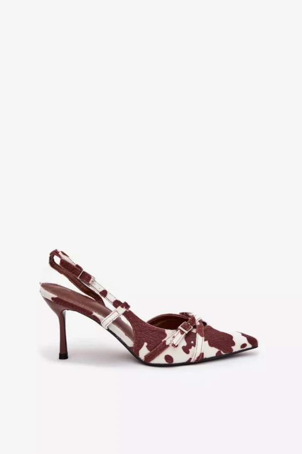 Sieviešu atvērtā purngala kurpes ar augstiem papēžiem ir lieliska izvēle īpašiem gadījumiem. Priekšpusē ir divas savstarpēji savienotas siksnas, kas rotātas ar mazām sprādzēm, kas piešķir kurpēm smalku šarmu. Smaili purngali pagarinātu kājas, piešķirot siluetam slaidu un elegantu izskatu. Ideāli piemēroti vakara pasākumiem, kāzām vai citām svinībām. Izvēloties savu izmēru, lūdzu, izmantojiet izmēru tabulu.