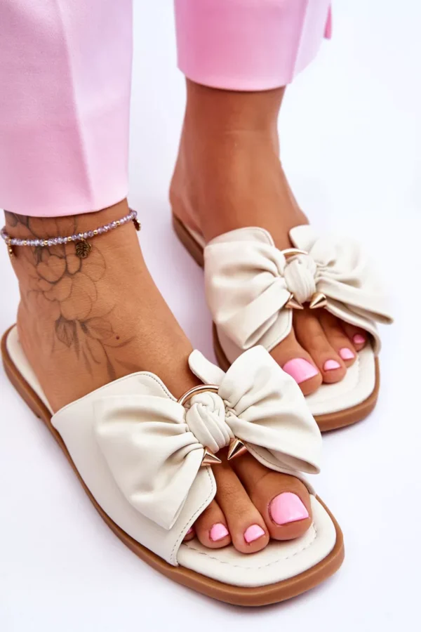 Klasiskas formas sieviešu čības. Izgatavotas no ekoloģiskās ādas. Moderna lenta ar rotājumu priekšā padara šīs čības izskatās lieliski! Mīkstā zole ir ērta valkāšanai un arī izgatavota no ekoloģiskās ādas. Atklāta purngala, kvadrātveida. Čības ir ar plakanu papēdi. Modīgas un ērti valkājamas – nepieciešams pirkums. Izvēloties izmēru, lūdzu, izmantojiet izmēru tabulu.