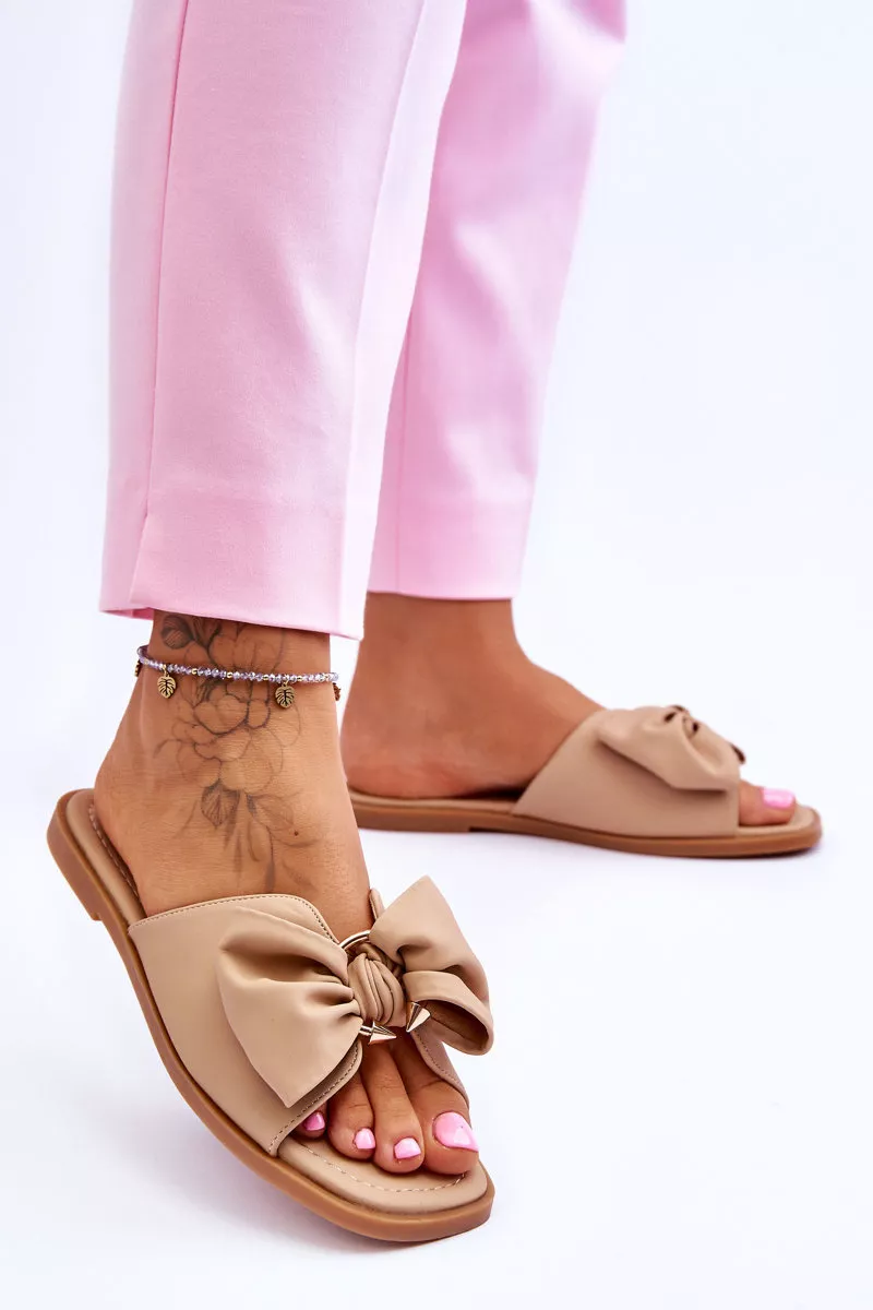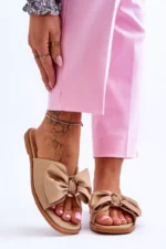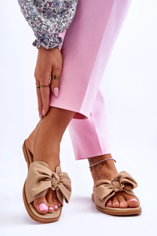 Sieviešu ādas čības ar lenti, smilškrāsas Becky