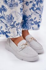 Šie sieviešu mokasīni, kas izgatavoti no dabiskas ādas un aprīkoti ar nelielu platformu, apvieno eleganci un komfortu. Noapaļotie purngali nodrošina komfortu visas dienas garumā, bet smalkie zelta rotājumi priekšpusē piešķir apaviem unikālu raksturu. Ādas odere nodrošina atbilstošu polsterējumu, garantējot komfortu katrā solī. Šie mokasīni ir lieliska izvēle ikdienas valkāšanai, labi saderot gan ar elegantu, gan ar ikdienas stilu. Izvēloties savu izmēru, lūdzu, izmantojiet izmēru tabulu.