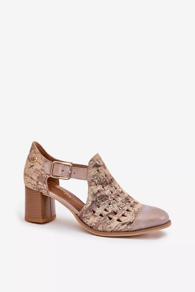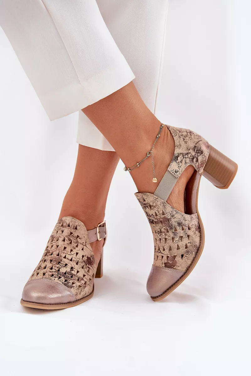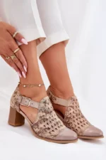 Kurpes ar mandeles formas purngalu. Tām ir regulējama siksna, kas tiek piestiprināta ap potīti ar sprādzi un elastīgu lenti. Sānos ir iespaidīgi izgriezumi. Izgatavotas no dabīgās ādas. Tām ir pastiprināts papēdis. Dekorētas ar perforētu rakstu priekšpusē. Mīkstā ādas zole padara kurpes ērtas valkāšanai pat visu dienu! Papēdis ir stabils un kolonnveida. Izvēloties izmēru, skatieties izmēru tabulu.