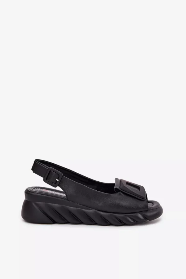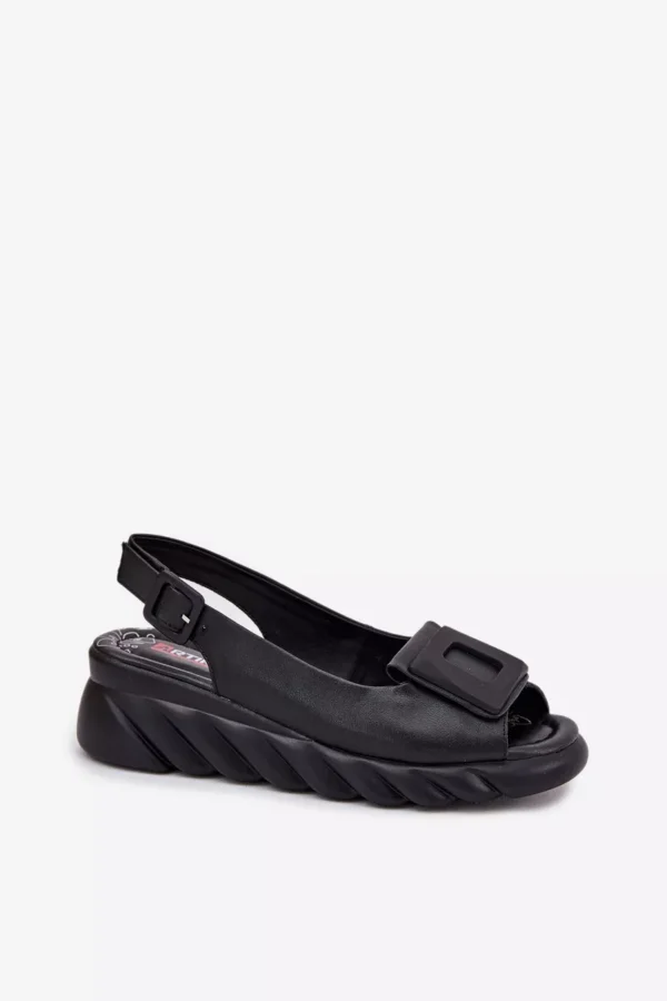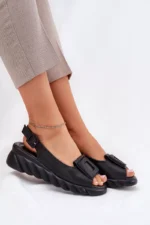 Šie sieviešu sandales, kas izgatavotas no dabīgās ādas un aprīkotas ar platformu, ir eleganta izvēle siltajām dienām. Modelis izceļas ar dekoratīvo elementu priekšpusē, kas piešķir tam unikālu raksturu. Piesprādzētas ar sprādzi un regulējamu siksnu, tās nodrošina perfektu pielāgošanos jūsu kājām. Turklāt mīkstā iekšējā zole nodrošina komfortu visas dienas garumā. Šie sandales ir ideāla izvēle vasaras stilam, apvienojot eleganci ar komfortu. Izvēloties savu izmēru, lūdzu, izmantojiet izmēru tabulu.