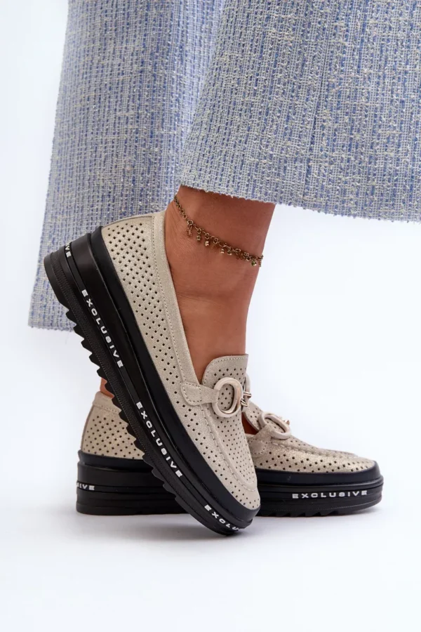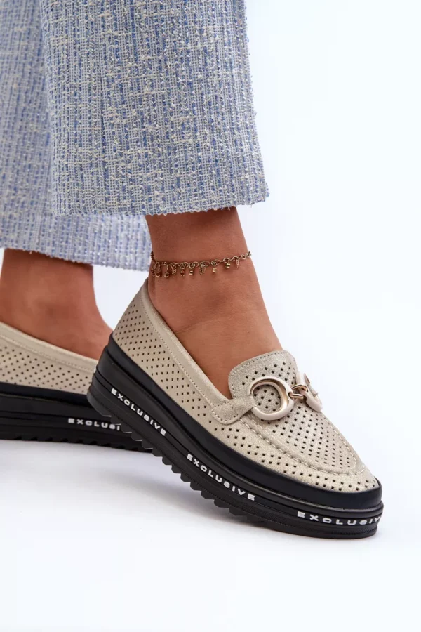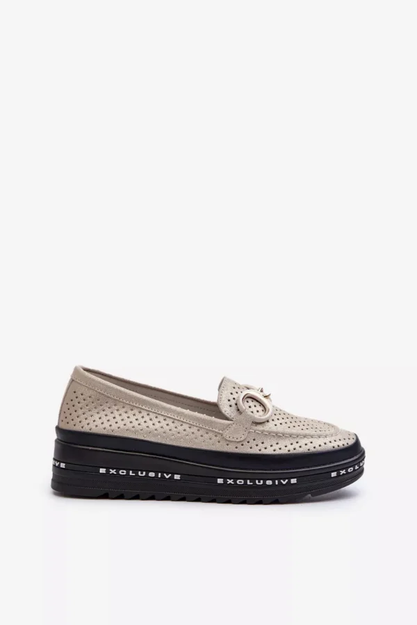 S.Barski sieviešu mokasīni. Izgatavoti no dabīgās ādas. Uz platformas. Noapaļoti purngali. Dekoratīvs elements priekšpusē. Mīkstas zolītes nodrošina komfortu lietošanas laikā. Šie mokasīni lieliski papildinās daudzus dažādus stilus! Izvēloties izmēru, lūdzu, skatieties izmēru tabulu.