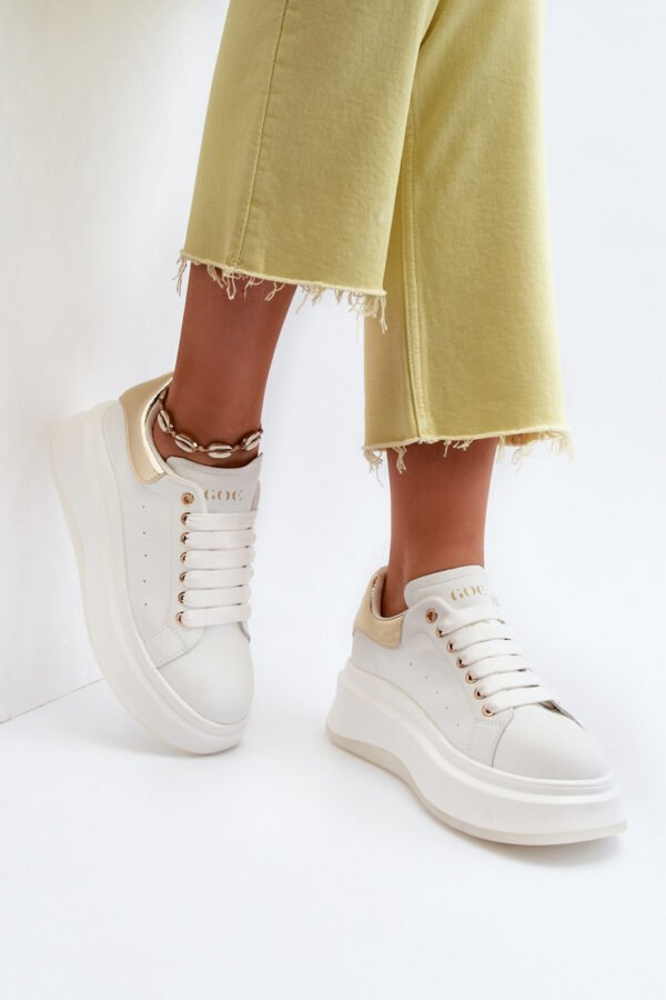 Unikālas GOE sporta kurpes, izgatavotas no augstas kvalitātes dabīgās ādas. Augšējā daļā ir dekoratīvs spoguļveida ieliktnis ar GOE logotipu. Mīkstā, videi draudzīgā ādas zole garantē komfortu visas dienas garumā. Ievietota platforma. Klasiskā auklas sasiešana ļauj pielāgot apavus jūsu pēdu platumam. Šis brīnišķīgais modelis noteikti ir jāiekļauj jūsu garderobē! Izvēloties izmēru, izmantojiet izmēru tabulu.