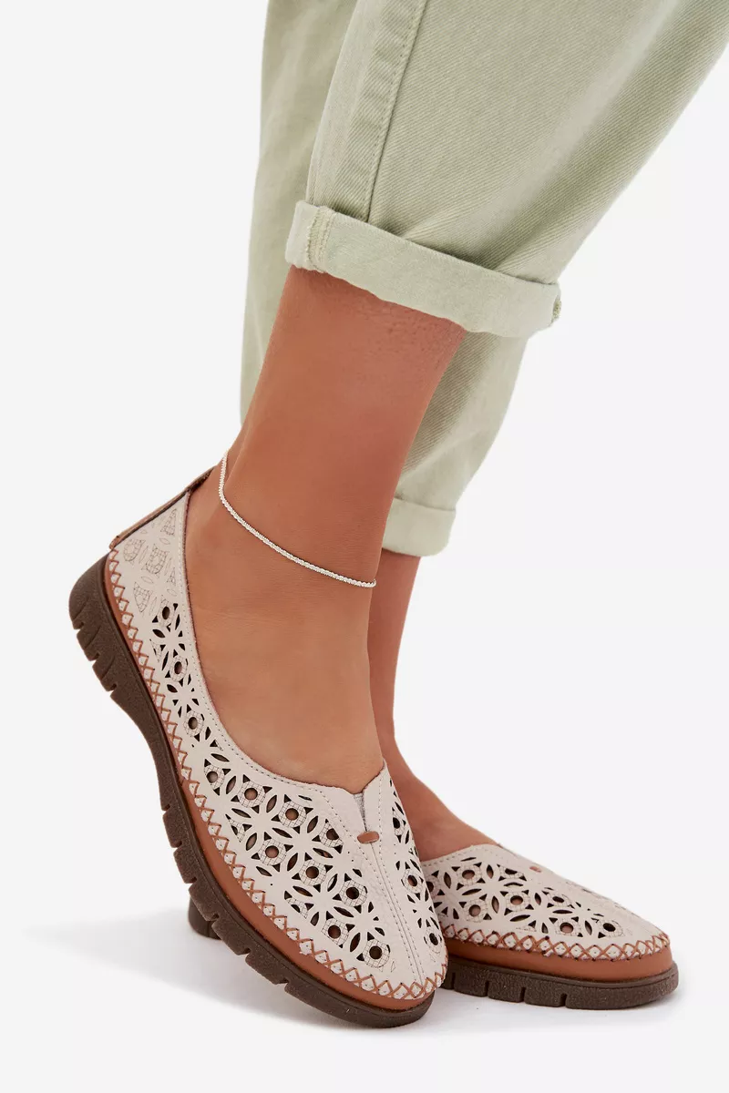 Sergio Leone atvērtā purngala sieviešu balerīnu kurpes ir lieliska izvēle sievietēm, kas novērtē komfortu un izsmalcinātu, sievišķīgu stilu. Izgatavotas no dabīgās ādas, tās valdzina ar savu maigumu un estētisko apdari, nodrošinot komfortu ikdienas valkāšanai. Perforētā virsa nodrošina vieglumu un labāku gaisa cirkulāciju, padarot tās ideālas siltākām dienām. Mīkstā ādas zole vēl vairāk uzlabo komfortu, pielāgojoties pēdas formai. Šīs ir laikmetīgas balerīnu kurpes, kas perfekti papildina gan ikdienas, gan elegantu stilu. Izvēloties izmēru, lūdzu, izmantojiet izmēru tabulu.