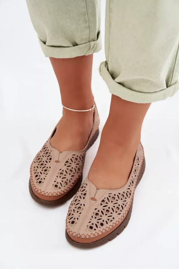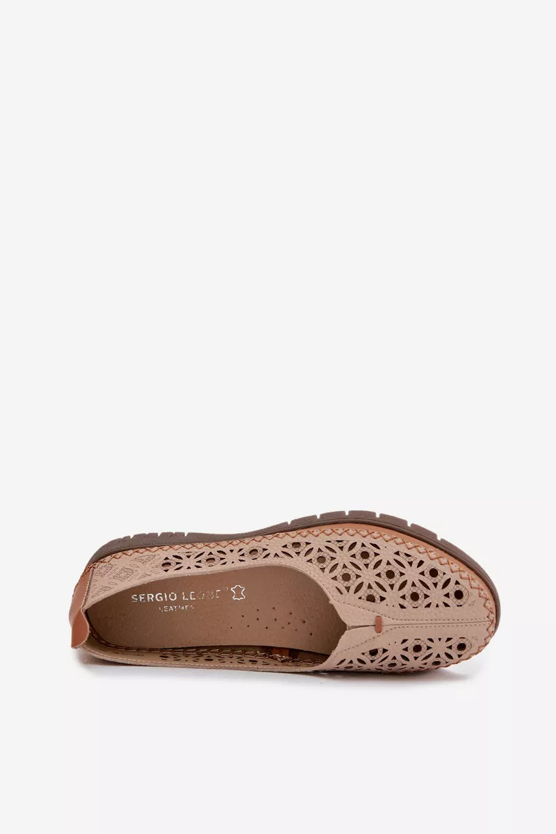 Sergio Leone atvērtā purngala sieviešu balerīnu kurpes ir lieliska izvēle sievietēm, kas novērtē komfortu un izsmalcinātu, sievišķīgu stilu. Tās ir izgatavotas no dabīgās ādas, un ar savu maigumu un estētisko apdari nodrošina komfortu ikdienas valkāšanai. Perforētā virsa piešķir tām vieglumu un veicina labāku gaisa cirkulāciju, padarot tās ideālas siltākām dienām. Mīkstā ādas zole vēl vairāk uzlabo komfortu, pielāgojoties pēdas formai. Šīs ir laikmetīgas balerīnu kurpes, kas perfekti papildina gan ikdienas, gan elegantu stilu. Izvēloties izmēru, lūdzu, izmantojiet izmēru tabulu.