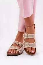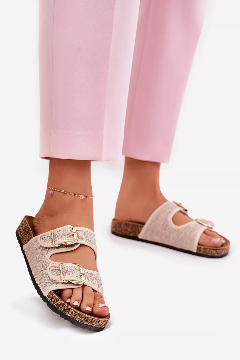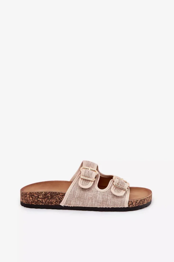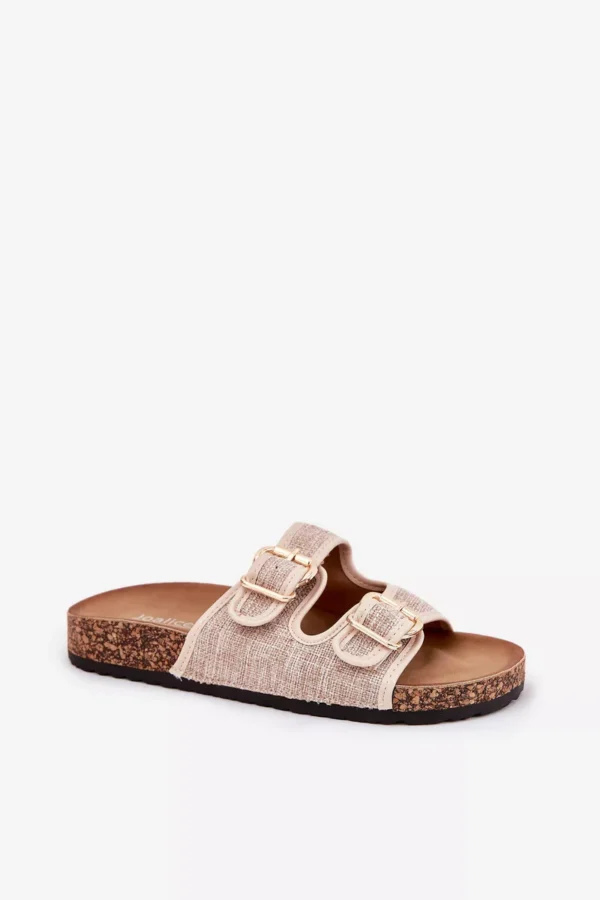 Sieviešu auduma čības uz korķa platformas ar sprādzēm, smilškrāsas Osoffe