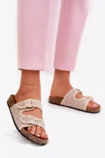 Šie sieviešu čības, kas izgatavotas no tekstilmateriāla, ir lieliska izvēle karstām dienām. Divas siksnas ar sprādzēm ļauj viegli pielāgot čības kājai, bet korķa platforma nodrošina vieglumu un modernu izskatu. Konturēta pēdu daļa nodrošina komfortu visas dienas garumā, padarot šos čības par lielisku izvēli pastaigām vai vasaras ceļojumiem. Komforta un stila apvienojums vienā! Izvēloties izmēru, skatieties izmēru tabulu.