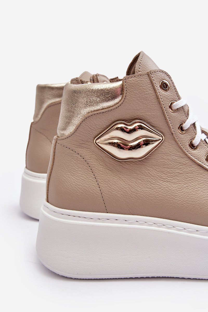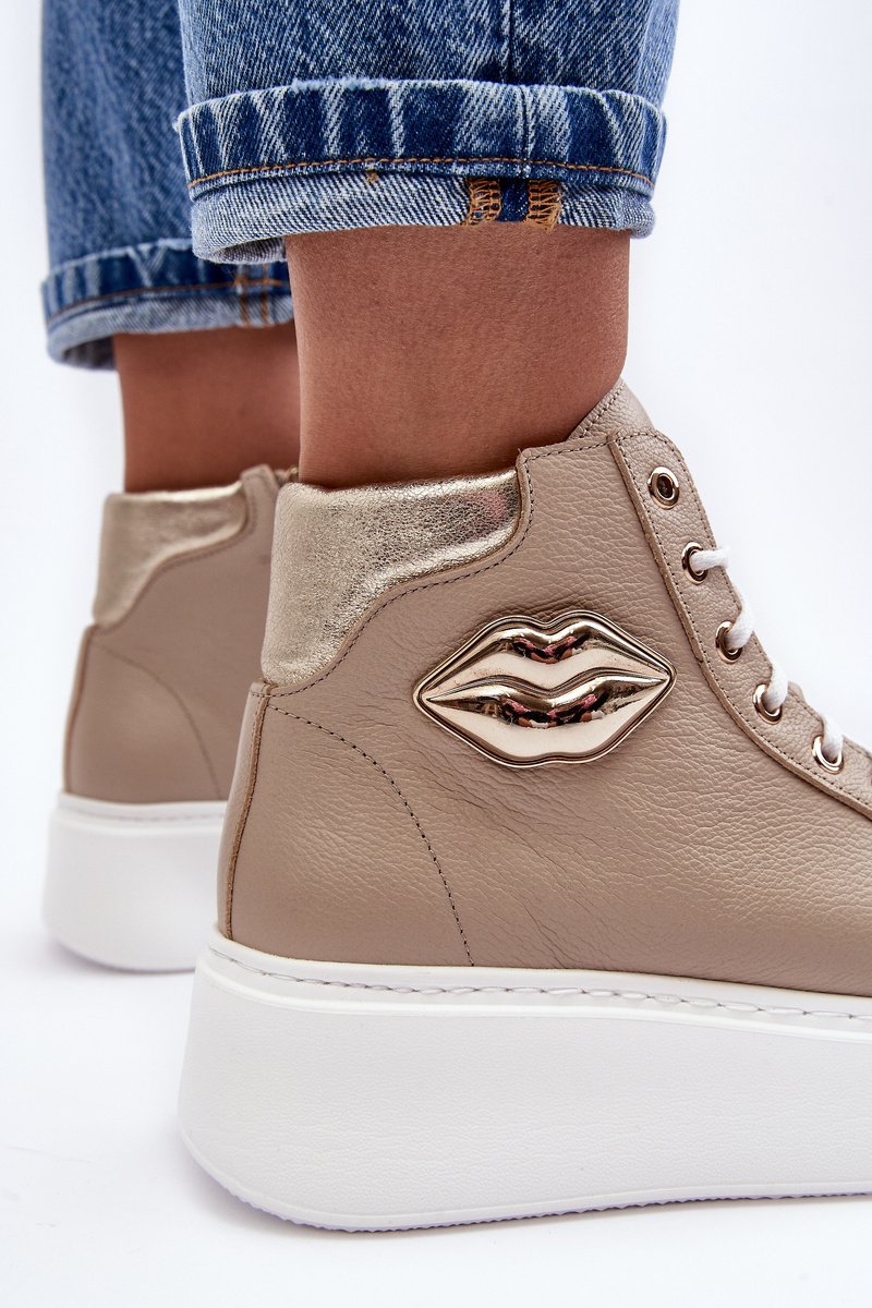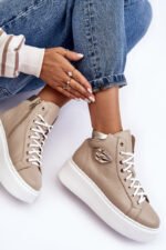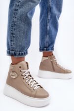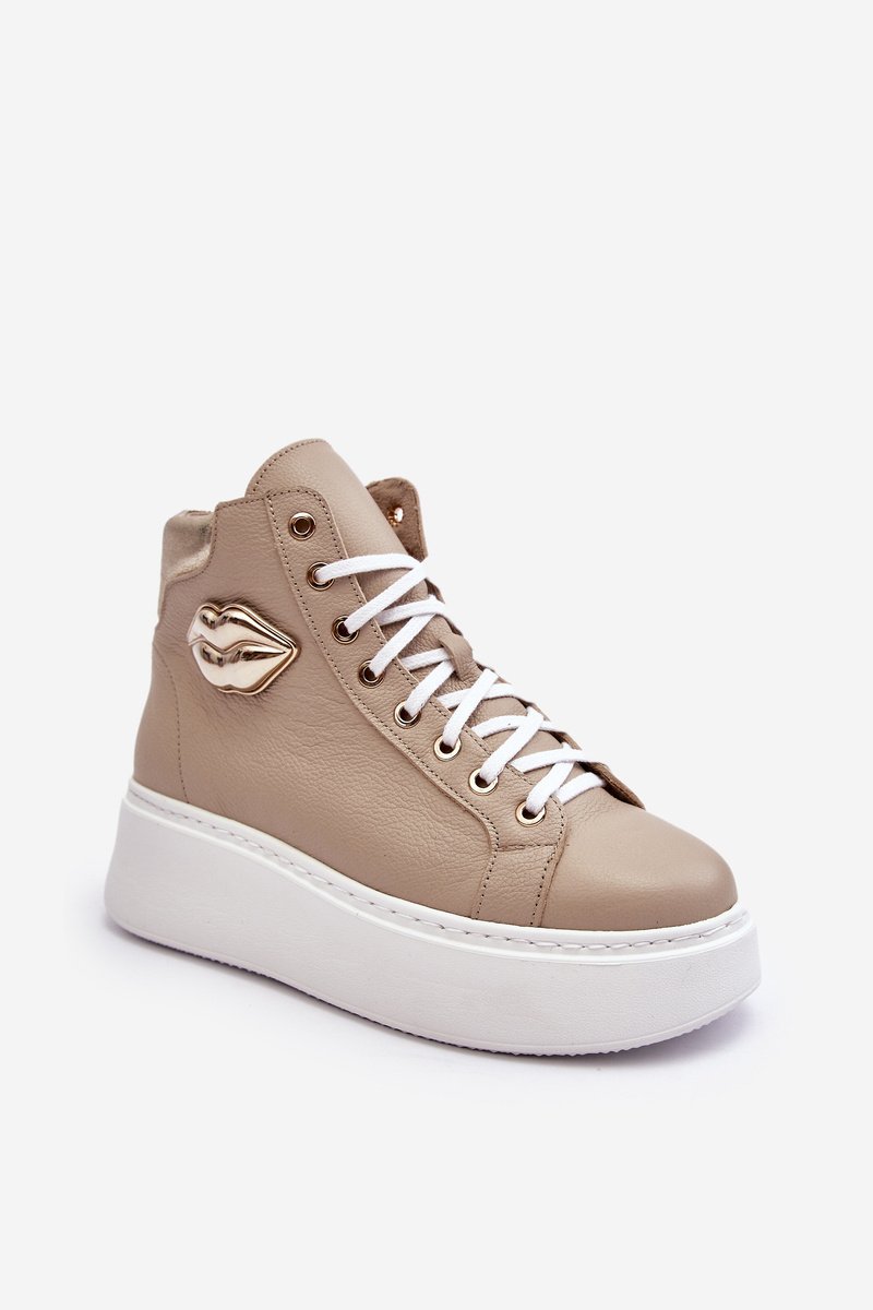Šie augstie sieviešu sporta apavi ir izgatavoti no dabiskas ādas. Tie ir aprīkoti ar auklām un sānu rāvējslēdzēju augšdaļā. Šis ērtais modelis ir veidots uz plašas platformas. Iekšzole arī ir izgatavota no dabīgās ādas. Klasiskais raksts, ērta forma un moderns dizains izceļ šos sporta apavus no citiem modeļiem! Izvēloties izmēru, skatieties izmēru tabulu.