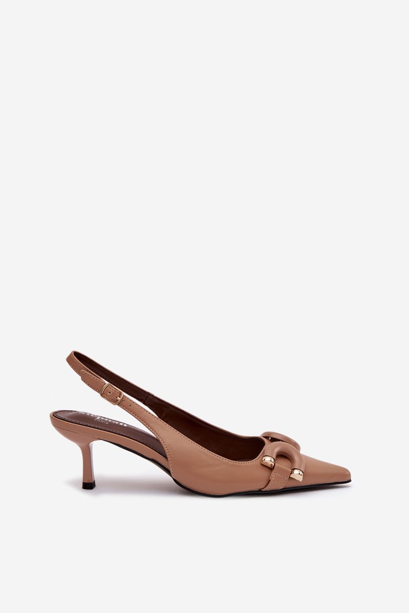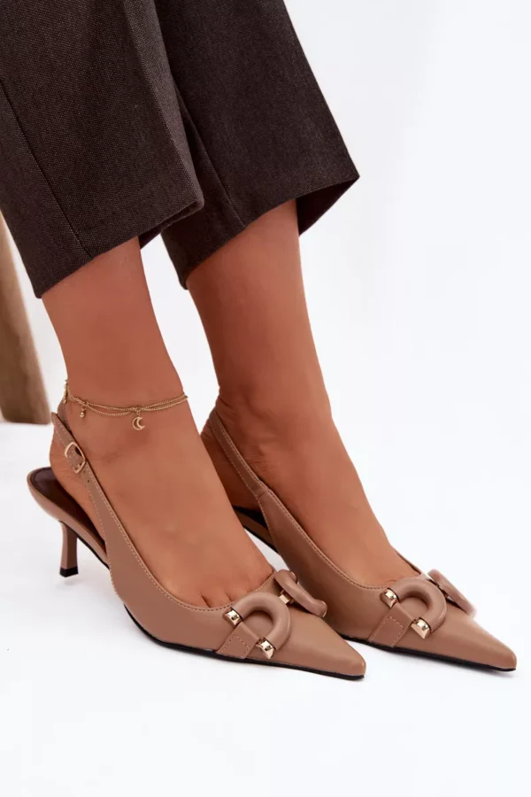 Sieviešu sandales, kas izgatavotas no ekoskinnas, ir stilīgs risinājums īpašiem gadījumiem. Slēgtas, smailas purngali piešķir tām klasisku un sievišķīgu raksturu, bet priekšējais dekoratīvais elements pievērš uzmanību un izceļ modeļa eleganci. Plānais papēdis skaisti izstiepj siluetu un piešķir kopējam izskatam šarmu. Modelis ar sprādzi un regulējamu siksniņu ļauj ideāli pielāgoties pēdai, nodrošinot komfortu un stabilitāti valkājot. Sandales ir ideālas papildinājumam daudzām stilizācijām, elegantiem kleitiem un īpašiem gadījumiem. Izvēloties izmēru, lūdzu, skatiet izmēru tabulu.