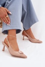 Sieviešu augstpapēžu sandales ar dekoratīviem elementiem, krāsā smilškrāsas Mariae