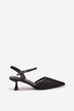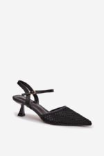 Sieviešu augstpapēžu sandales ar siksnām un sprādzi, melnas Parina