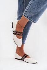 Sieviešu balerīnu kurpes ar plakanu zoli ir klasisks un ērts stils, kas ir ideāli piemērots ikdienas valkāšanai. Tām ir noapaļoti purngali, kas piešķir tām maigu un sievišķīgu raksturu. Augšējā daļā ir regulējama siksna ar sprādzi, kas ne tikai piešķir elegantu izskatu, bet arī ļauj apaviem ideāli pielāgoties kājai un palielina stabilitāti. Tās ir universālas balerīnu kurpes, kas apvieno komfortu ar nemirstīgu stilu – ideāli piemērotas darbam, pastaigām vai tikšanās reizēm pilsētā. Izvēloties izmēru, iesakām izmantot izmēru tabulu. Izvēloties izmēru, izmantojiet izmēru tabulu.