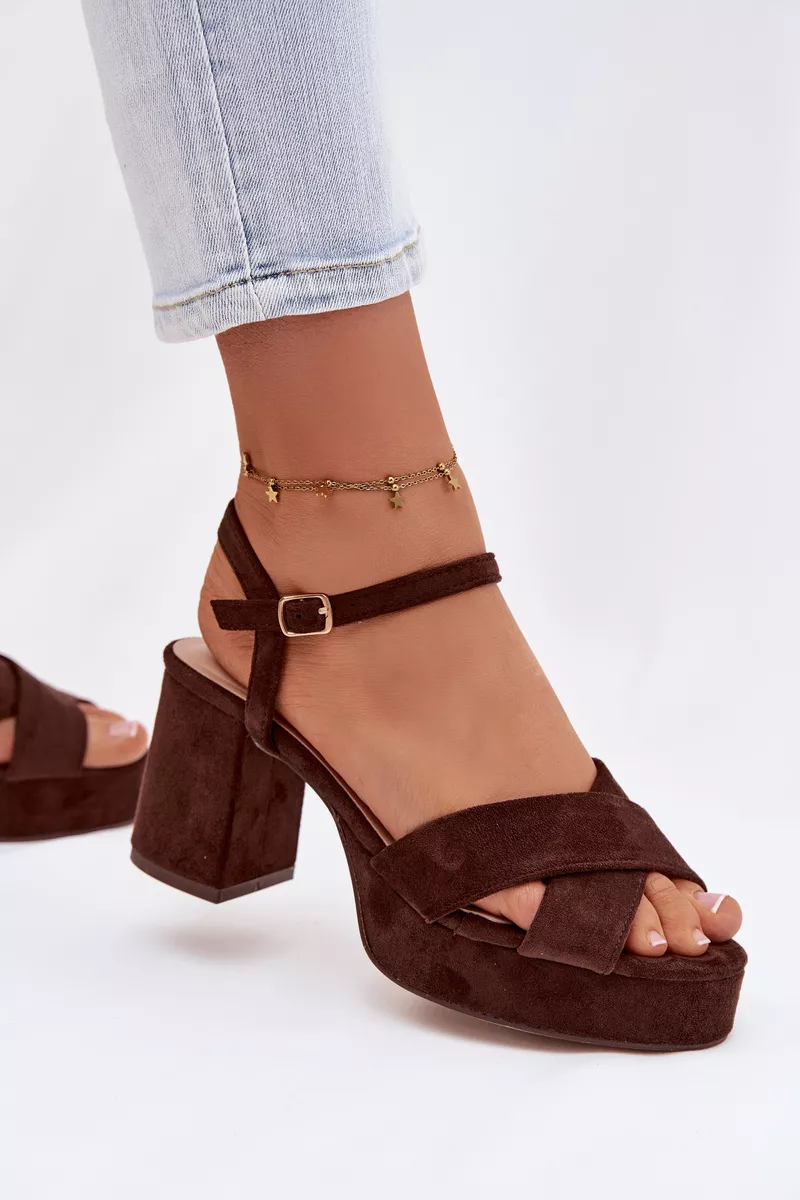 Sieviešu sandales, izgatavotas no videi draudzīgas ādas. Modelis ar stabilu blokveida papēdi un platformu nodrošina komfortu un pārliecību katrā solī, vienlaikus uzsverot siluetu. Divas savstarpēji savītas siksnas priekšā stilīgi izceļ pēdu un piešķir visam izskatam modernu izskatu. Regulējama siksna ar sprādzi ļauj sandales ideāli pielāgot kājai. Šis modelis ir ideāls gan ikdienas valkāšanai, gan īpašiem gadījumiem. Izvēloties izmēru, lūdzu, izmantojiet izmēru tabulu.