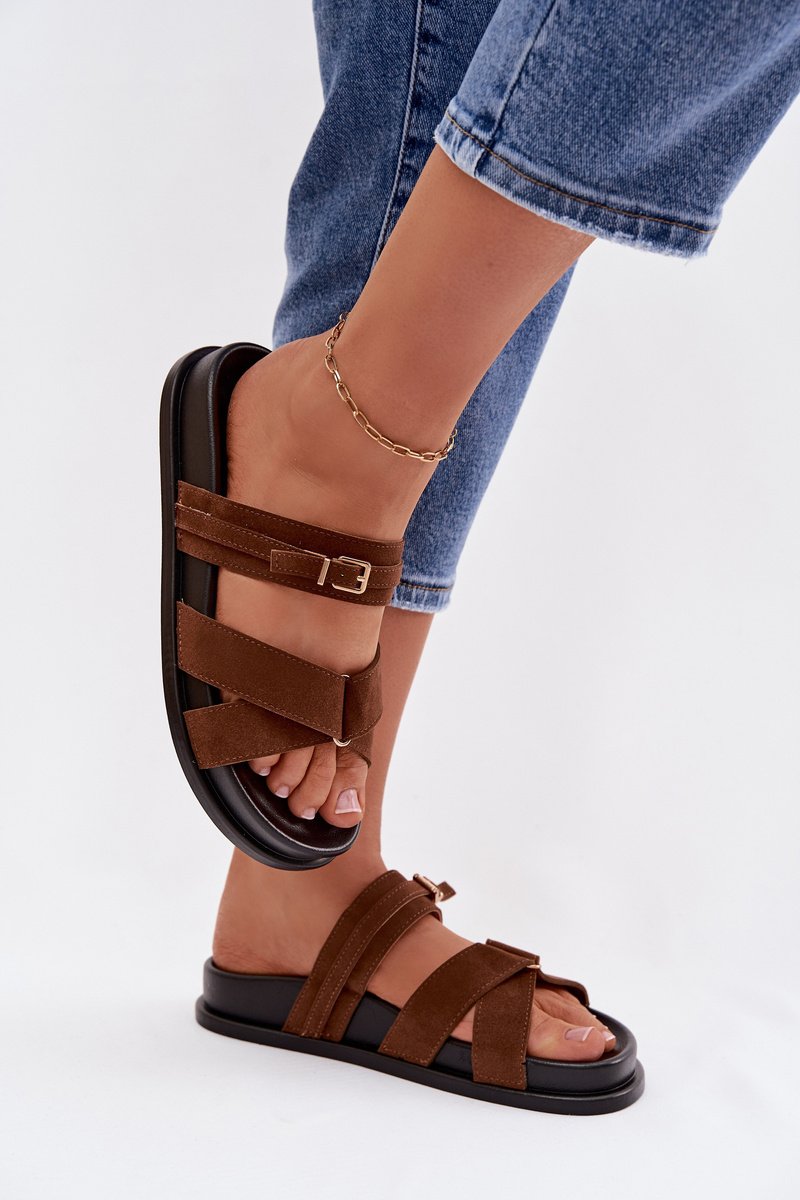 Stilīgas sieviešu sandales no videi draudzīga zamšāda ir ērta izvēle siltajām dienām. Modelis ar siksnām, kas rotātas ar nelielu zelta sprādzi, piesaista uzmanību un piešķir visam izskatam smalku, sievišķīgu raksturu. Maigi izliektā zole nodrošina komfortu un labāku piegulumu. Šie sandales ir ideāli piemēroti ikdienas vasaras apģērbiem. Izvēloties izmēru, lūdzu, skatieties izmēru tabulu.