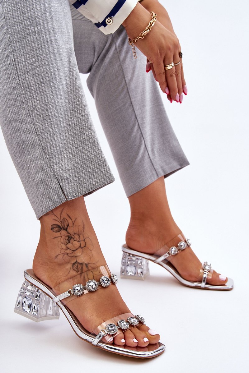 Sieviešu čības no plastmasas un ekoloģiskās ādas. Tām ir papēža bloks. Siksnas ir papildus dekorētas ar kristāliem un cirkonija imitācijas kniedēm. Klasisks modelis ar aizdari. Šiem apaviem ir mīksta zole no dabīgās ādas, kas padara tos ērti valkājamos. Lūdzu, izvēloties izmēru, skatieties izmēru tabulu.