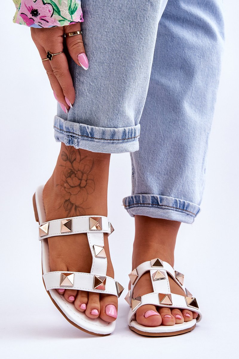 Šie klasiskie sieviešu čības ir izgatavotas no videi draudzīgas ādas. Tām ir moderni izgriezumi sānos. Tās ir arī dekorētas ar lieliem kniedēm. Čībām ir plakans papēdis ar gumijas, neslīdošu zoli. Šis modelis noteikti patiks katrai sievietei karstās dienās. Mīkstā, videi draudzīgā ādas zole ļauj ērti valkāt čības pat visu dienu. Izvēloties izmēru, skatieties izmēru tabulu.