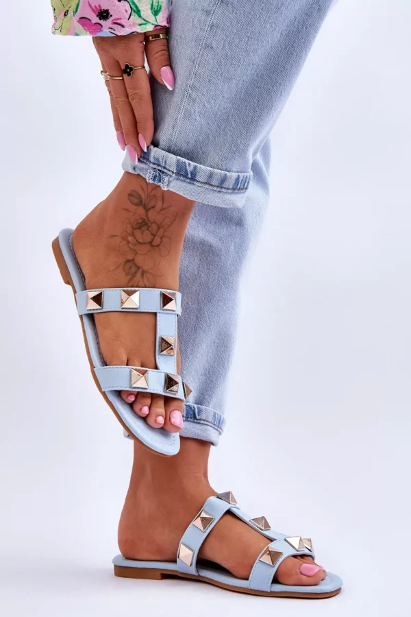 Šie klasiskie sieviešu čības ir izgatavotas no videi draudzīgas ādas. Tām ir moderni izgriezumi sānos. Tās ir arī dekorētas ar lieliem kniedēm. Čībām ir plakans papēdis ar gumijas, neslīdošu zoli. Šis modelis noteikti patiks katrai sievietei karstās dienās. Mīkstā, videi draudzīgā ādas zole ļauj ērti valkāt čības pat visu dienu. Izvēloties izmēru, skatieties izmēru tabulu.