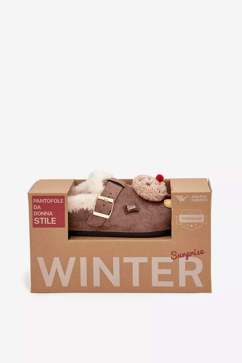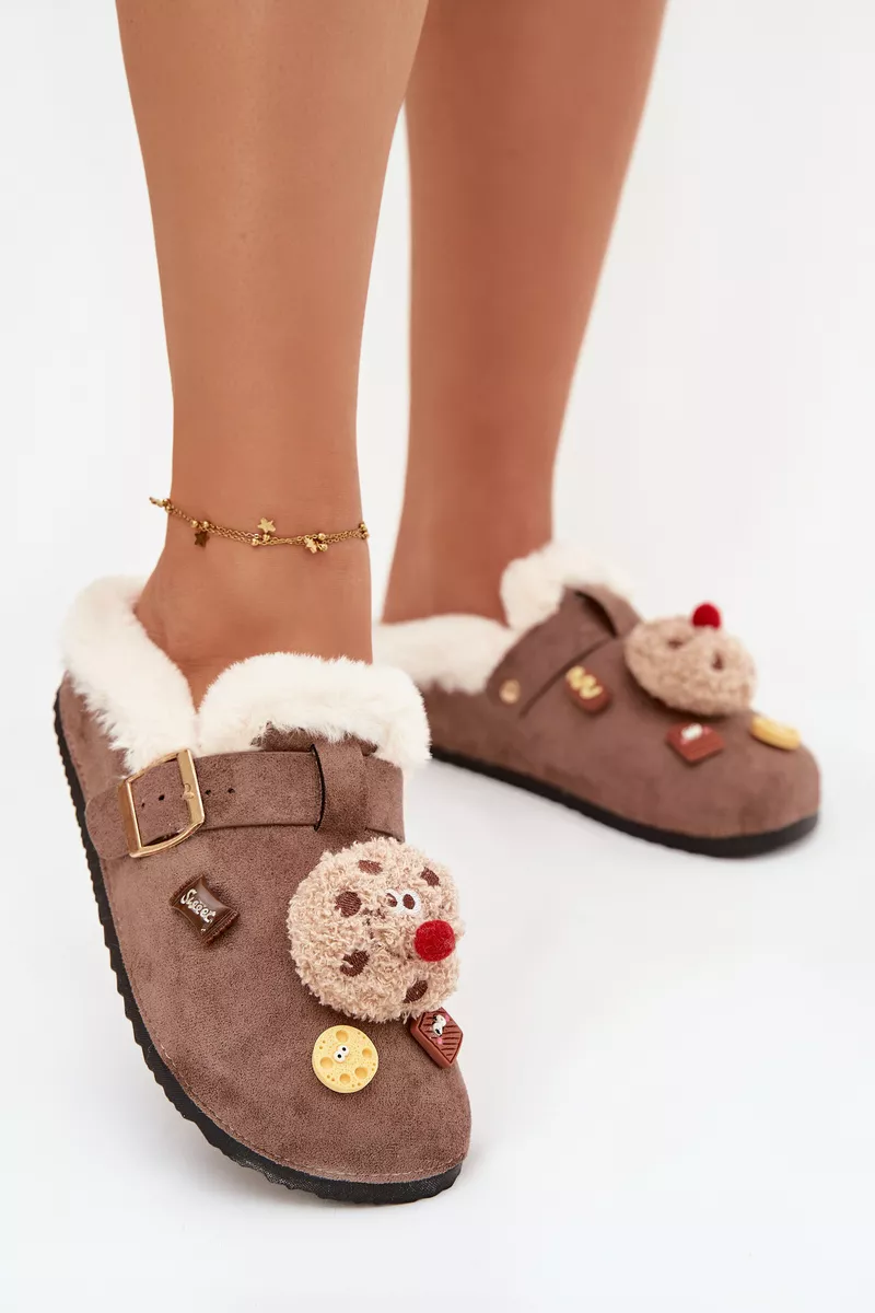 Šie sieviešu čības, kas izgatavotas no videi draudzīga zamšāda, ir mājīgas un stilīgas, ideāli piemērotas vēsākām dienām. Mīkstais audums iekšpusē nodrošina siltumu un komfortu, kad čības tiek valkātas. Čarmas etiķetes piešķir tām atšķirīgu raksturu, bet siksnas ar sprādzēm kalpo gan kā dekoratīvs akcents, gan kā elements, kas uzlabo čību piegulumu. Tās ir lieliska izvēle atpūtai mājās — siltas, ērtas un pilnas ar šarmu. Tās ir arī lieliska dāvana. Izvēloties izmēru, skatieties izmēru tabulu. Izvēloties izmēru, skatieties izmēru tabulu.