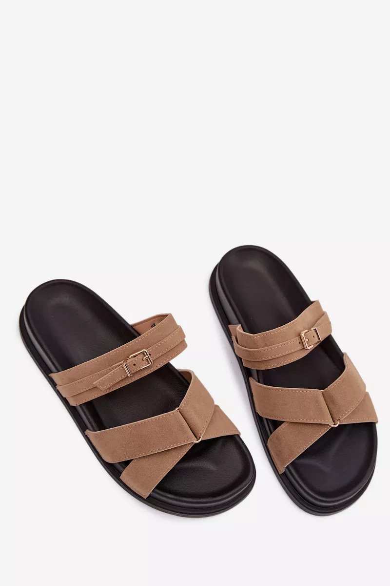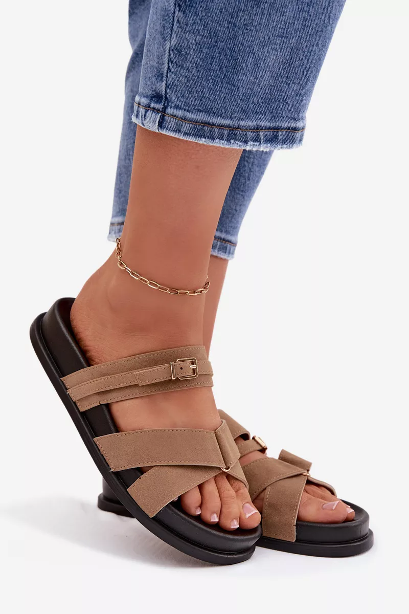 Stilīgas sieviešu sandales no videi draudzīga zamšāda ir ērta izvēle siltajām dienām. Modelis ar siksnām, kas rotātas ar nelielu zelta sprādzi, piesaista uzmanību un piešķir visam izskatam smalku, sievišķīgu raksturu. Maigi izliektā zole nodrošina komfortu un labāku piegulumu. Šie sandales ir ideāli piemēroti ikdienas vasaras apģērbiem. Izvēloties izmēru, lūdzu, skatieties izmēru tabulu.