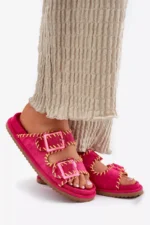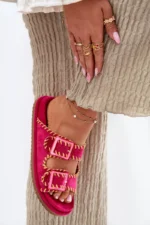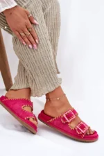 Sieviešu čības ar sprādzēm un dekoratīvu apdari fuksijas krāsā Visley