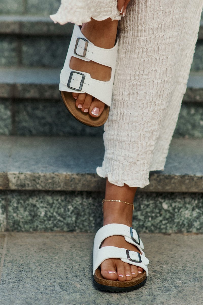 Sieviešu čības, izgatavotas no videi draudzīgas ādas. Divas siksnas ar sprādzēm nodrošina ērtu uzvalku, bet korķa zole piešķir vieglumu un stilu. Konturēta iekšējā zole nodrošina komfortu visas dienas garumā, padarot šos čības par ideālu izvēli pastaigām vai vasaras ceļojumiem. Komforts un stils vienā! Izvēloties izmēru, skatieties izmēru tabulu.