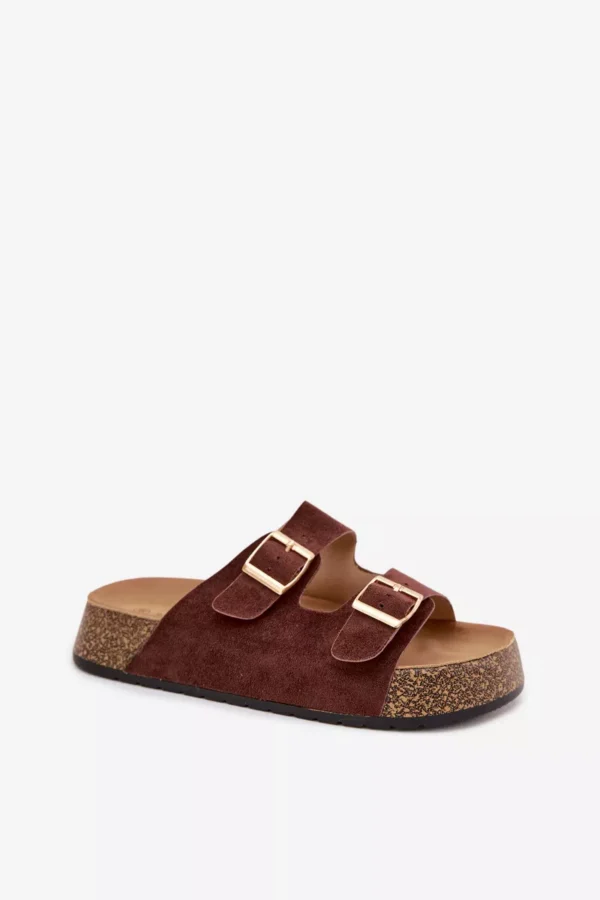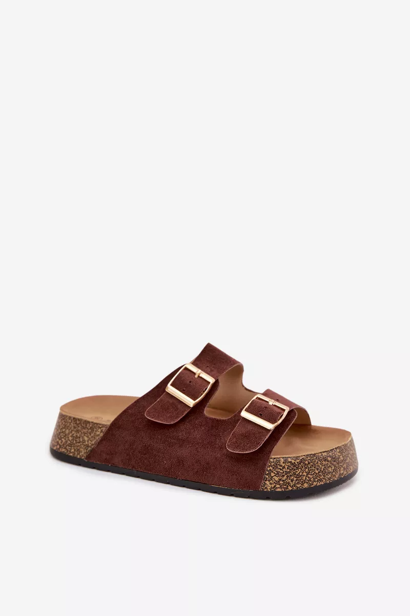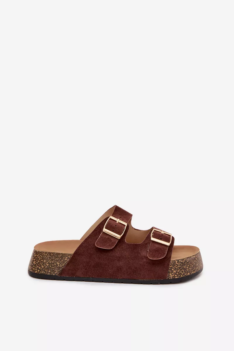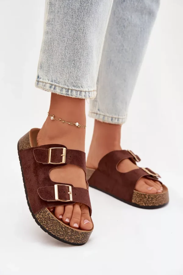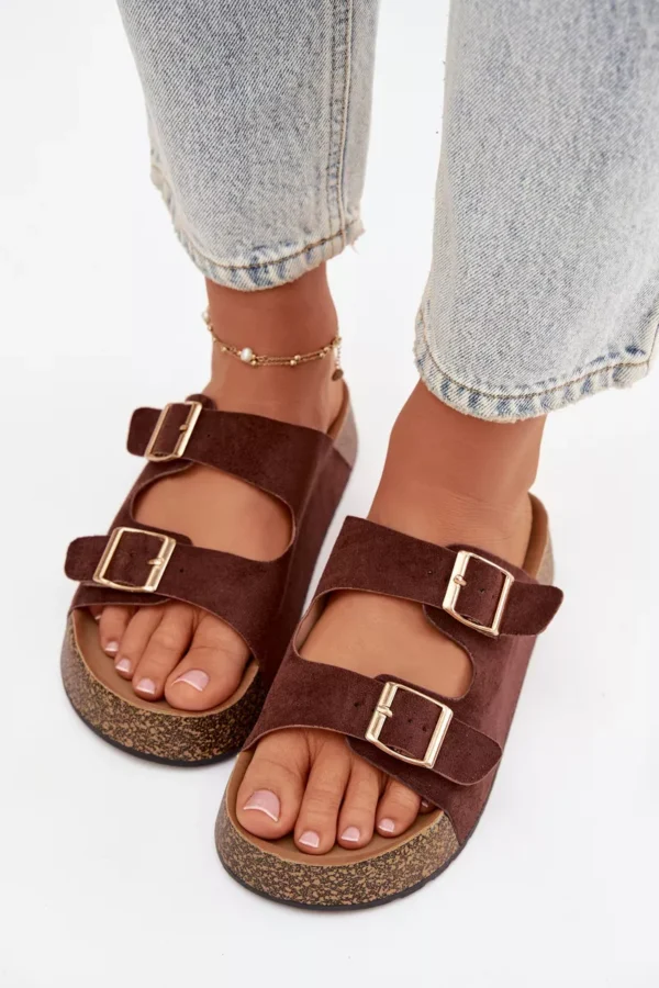 Sieviešu sandales ar korķa platformām ir moderns un ērts izvēles variants siltajām dienām. Izgatavotas no videi draudzīga zamšāda, tās izskatās stilīgi un ērti sēž uz kājām. Divas siksnas ar zelta sprādzēm piešķir eleganci un uzsver mūsdienu modes tendences. Šis modelis ir ideāls vasaras stila apģērbiem, apvienojot komfortu ar modernu izskatu. Izvēloties izmēru, lūdzu, izmantojiet izmēru tabulu.