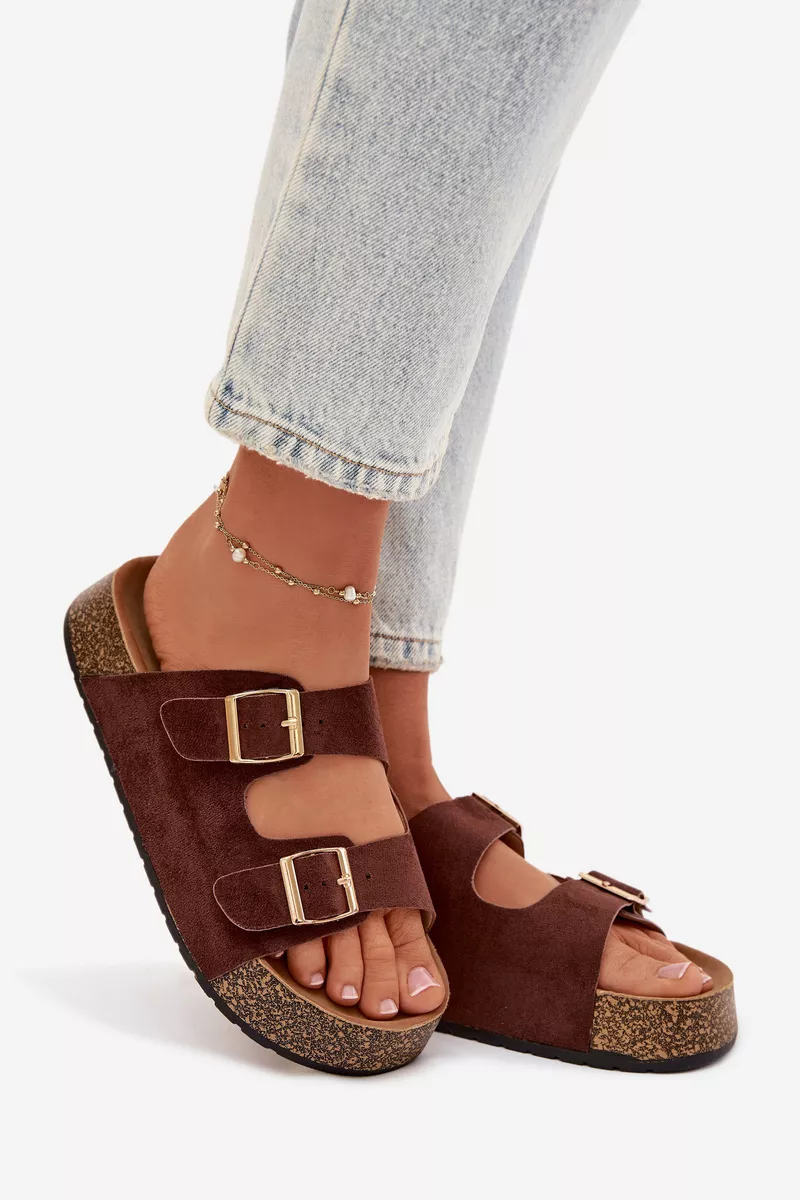Sieviešu čības uz korķa platformas ar zelta skavām Tovessa