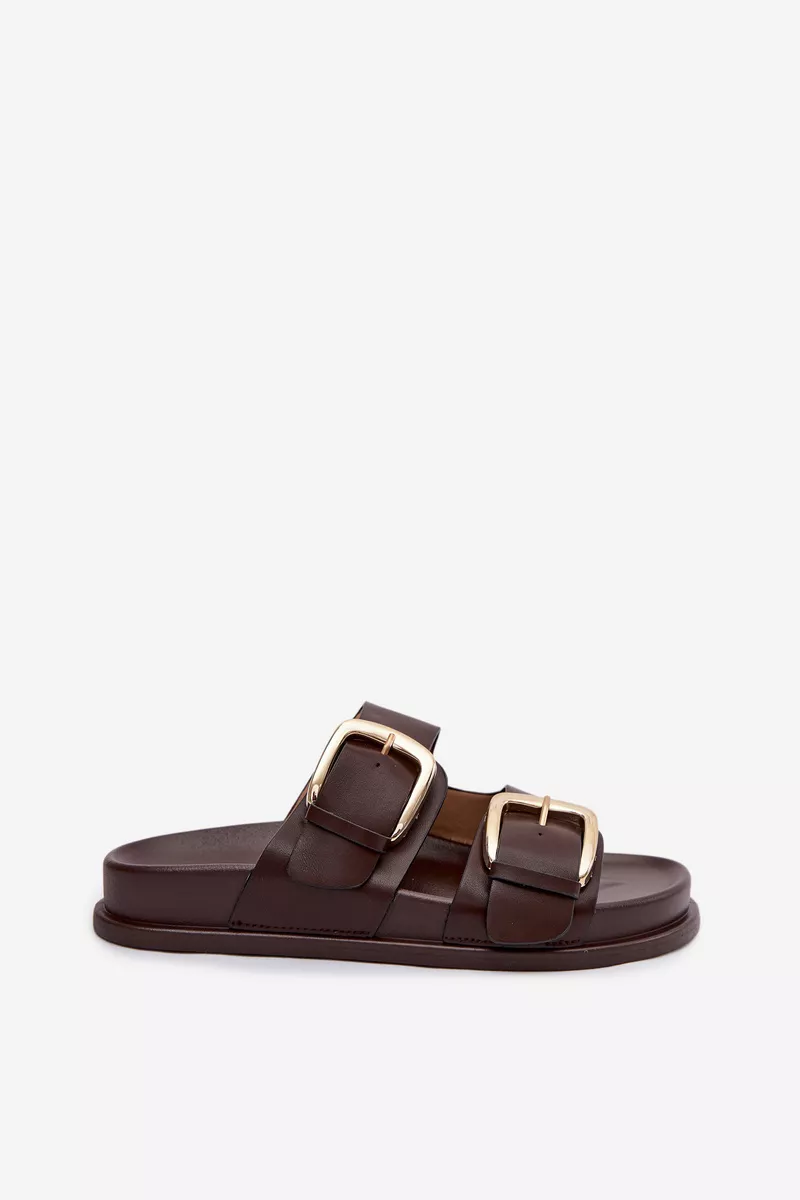 Stilīgi sieviešu rotaslietas no videi draudzīgas ādas ir ērta un modernā izvēle siltajām dienām. Modelim ir divas siksnas ar lielām zelta sprādzēm, kas rada izteiksmīgu, elegantu akcentu. Mīkstā platforma delikāti pacilā siluetu, vienlaikus saglabājot komfortu, bet profilētā zole nodrošina labu piegulumu un ērtības ejot. Šie sandales ir ideāli piemēroti ikdienas vasaras tērpiem. Izvēloties izmēru, lūdzu, izmantojiet izmēru tabulu.