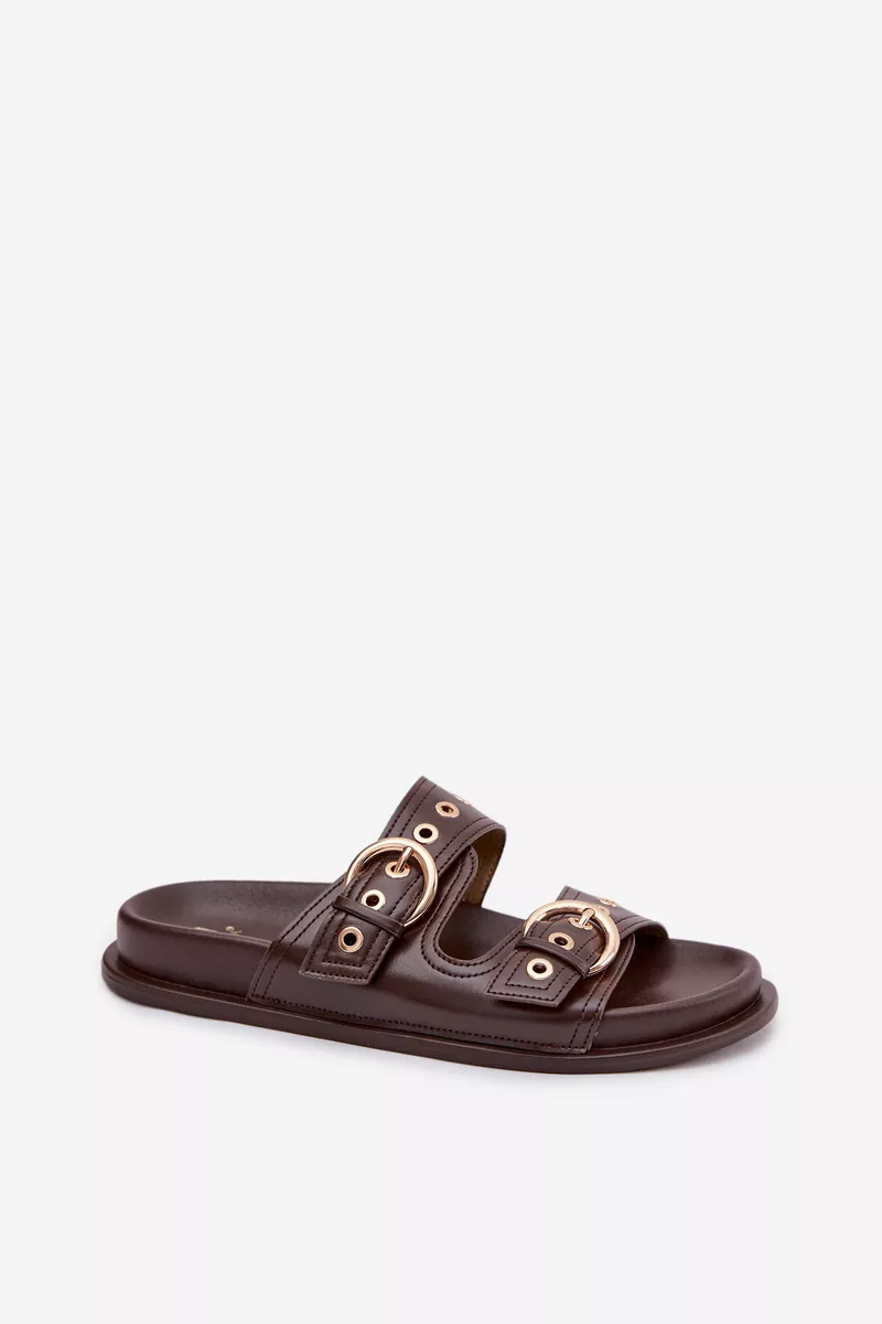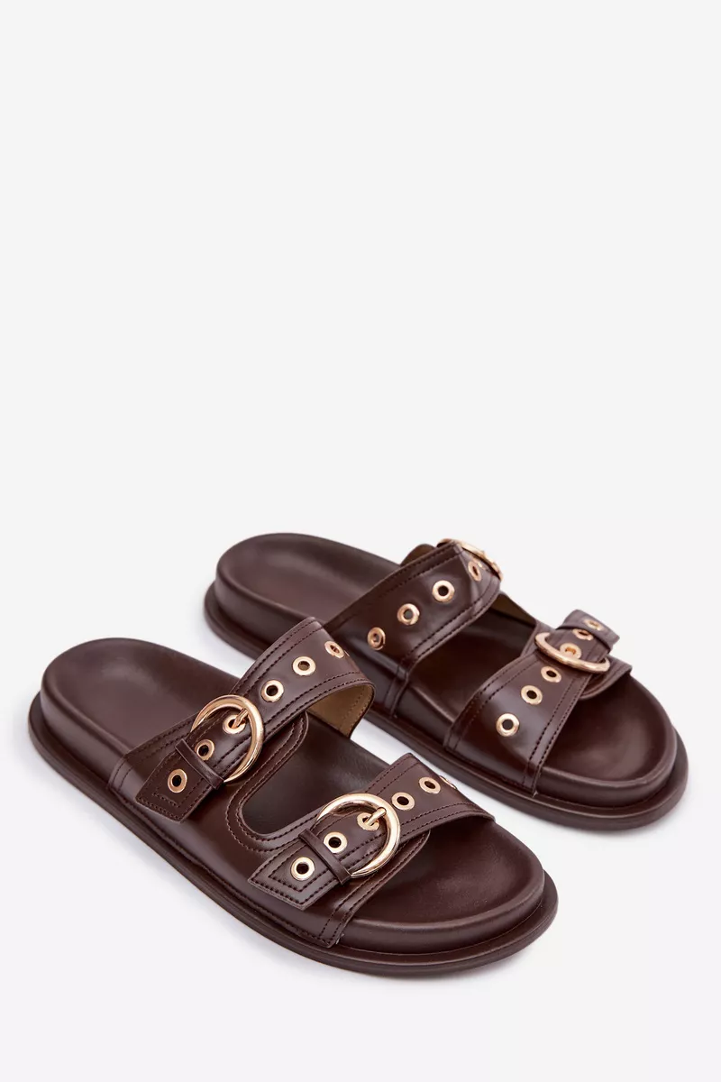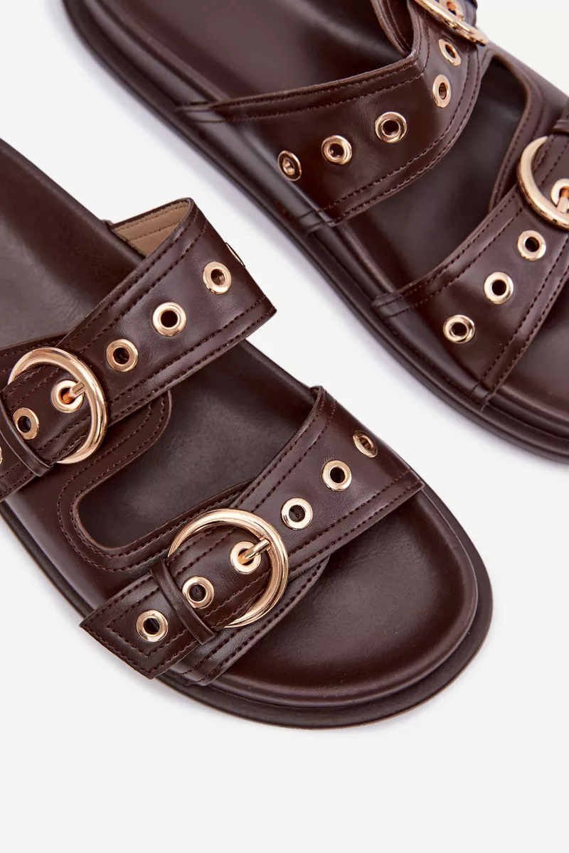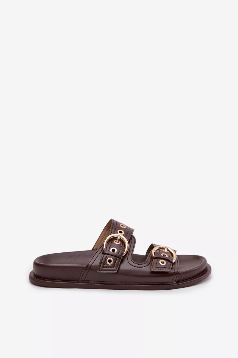 Stilīgi sieviešu rotaslietas no ekoloģiskās ādas ir praktiska un modernā izvēle siltajām dienām. Divas regulējamas siksnas ar zelta sprādzēm ļauj perfektu apavu pielāgošanu kājām un piešķir tām elegantu izskatu. Universālais dizains ļauj tos valkāt ikdienā, nodrošinot komfortu un stilu visas dienas garumā. Izvēloties izmēru, skatieties izmēru tabulu.